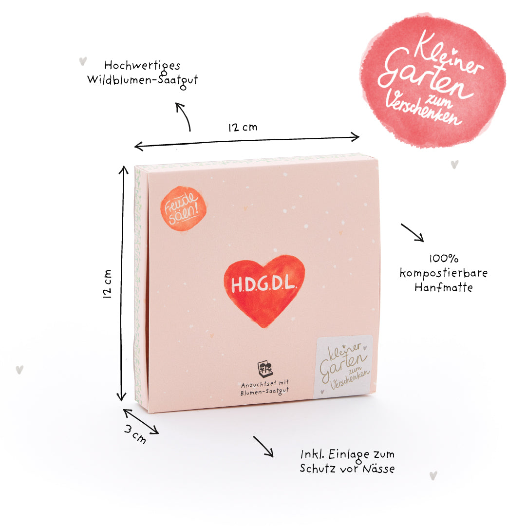 Sag es in fünf Buchstaben: Dieses liebevoll gestaltete Pflanzkästchen bringt die Botschaft "Hab dich ganz doll lieb" auf den Punkt - ehrlich, unkompliziert und von Herzen. Für die beste Freundin, den Lieblingsmenschen oder alle, die einfach wichtig sind im Leben.