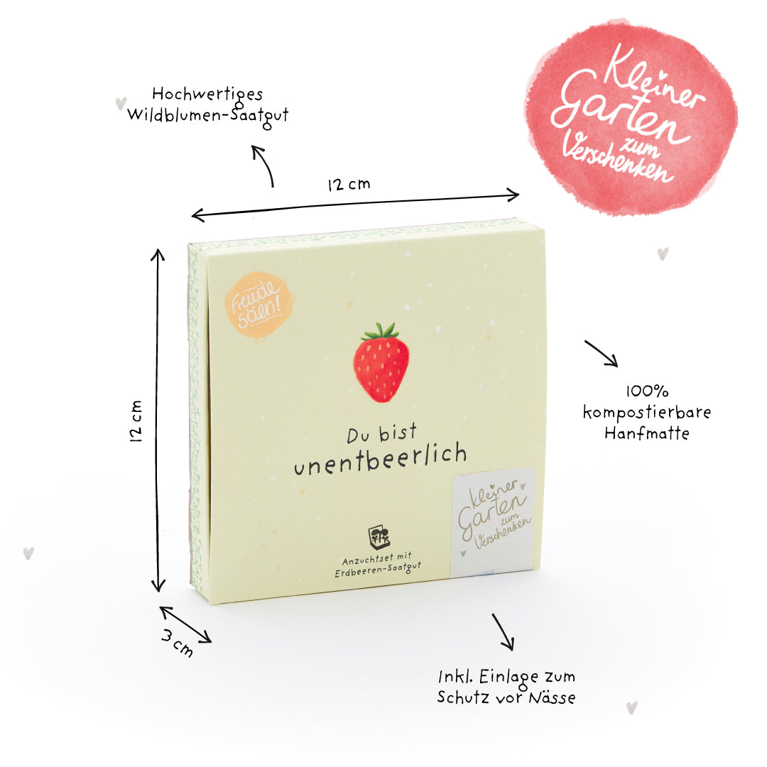 Einfach unentbeerlich: Dieses liebevoll gestaltete Pflanzkästchen sagt auf charmante Weise: Du bist wichtig - und nicht mehr wegzudenken. Für Lieblingsmenschen, gute Kolleginnen oder Freunde, die das Leben bereichern und dafür ein fruchtiges Dankeschön verdient haben.
