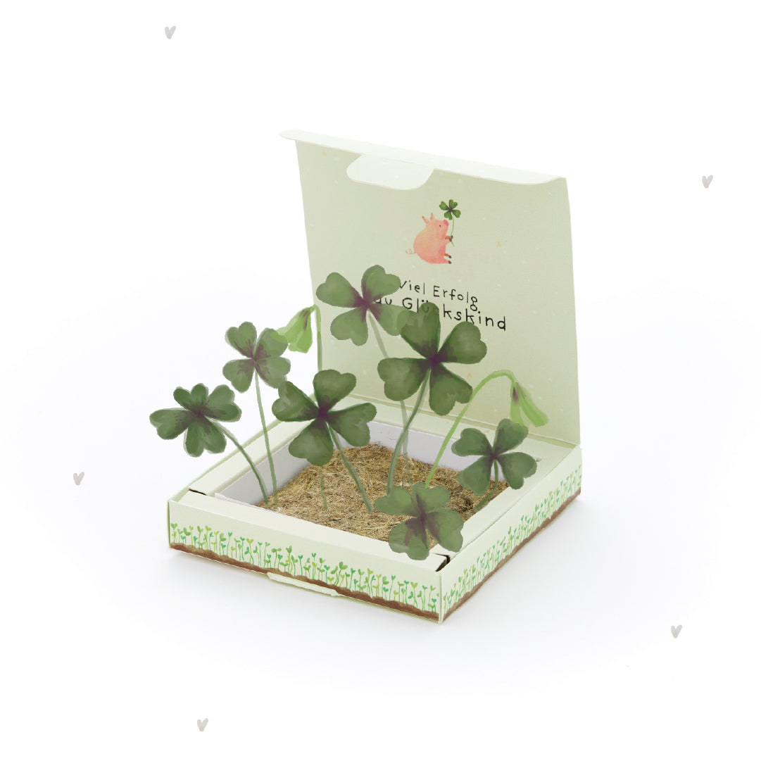 Ein Glücksbringer, der Wurzeln schlägt: Ob zur Prüfung, zum Schulabschluss, Studienstart oder ersten Arbeitstag - dieses Set sagt auf besondere Weise "Alles Gute und viel Erfolg". Aus dem Saatgut wächst Glücksklee, und mit etwas Glück zeigt sich sogar ein vierblättriges Kleeblatt - das klassische Symbol für Glück, das bleibt.