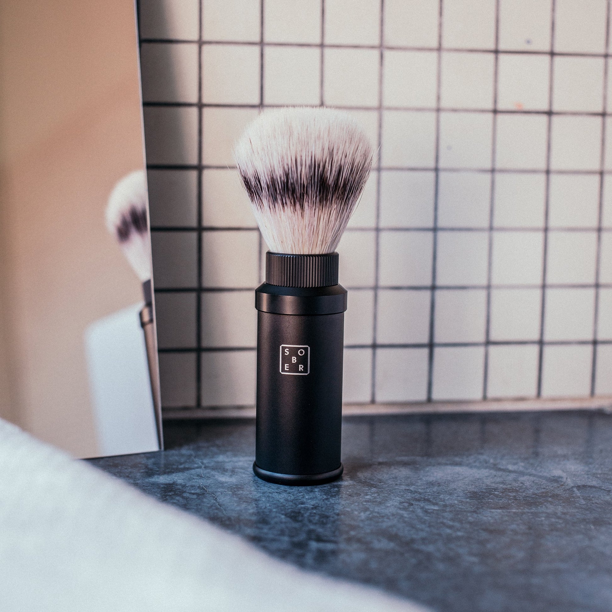 Bereit für ein jederzeit großartiges Rasiererlebnis auch auf Reisen? Der sober Rasierpinsel aus leichtem und stabilem Aluminium sowie in der Anwendung überlegenen weichen Borsten ist das perfekte Werkzeug um eine aufschäumende Wirkung auf die Rasiercreme zu erzielen und die Barthaare aufzustellen, so dass die Klinge gleichmäßig über die Haut gleiten kann. Der 3-Teile Aluminium Rasierpinsel besteht aus einem Aluminium Mantel mit einer Beschichtung in matt schwarz, in welcher der Pinsel bei Bedarf vollständig nach Nutzung versenkt werden kann.