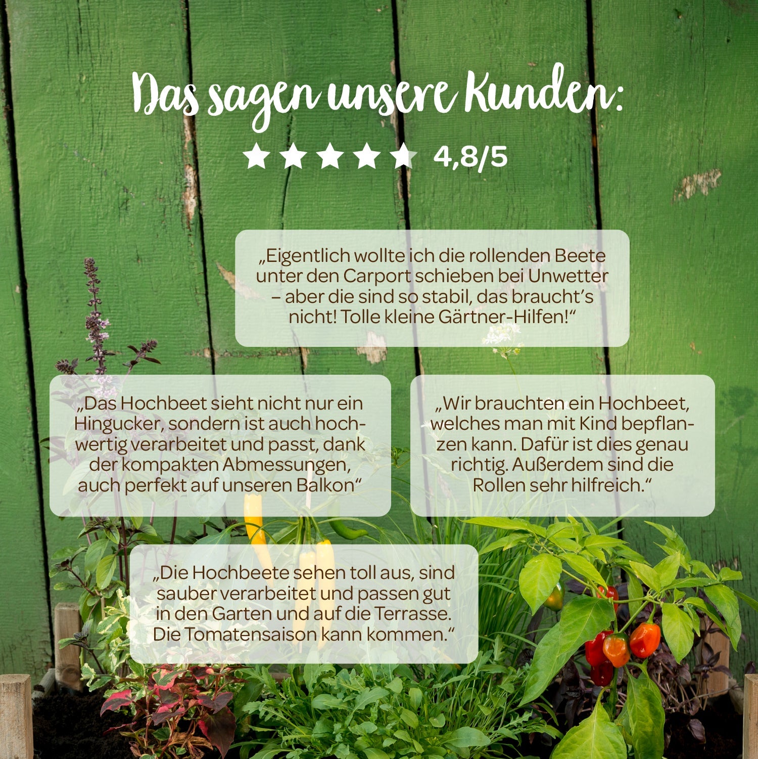 Zwiebelsiebe dienen von jeher als gute Lagermöglichkeit für Obst, Gemüse und Zwiebeln. Doch sie können noch mehr! Mehrere Zwiebelsiebe aufeinander gestapelt ergeben ein tolles Hochbeet, das du, dank seiner zusätzlich angebrachten Rollen, sogar umherschieben kannst. Mit einem Unkrautvlies ausgekleidet, bleibt die Erde zudem wo sie ist und überschüssiges Wasser läuft einfach ab. Übrigens: Das Hochbeet kommt komplett montiert. Im Herbst 2023 haben wir unser rollendes Hochbeet optimiert und die Rollen verstärkt, so dass sie nun noch mehr Gewicht halten.