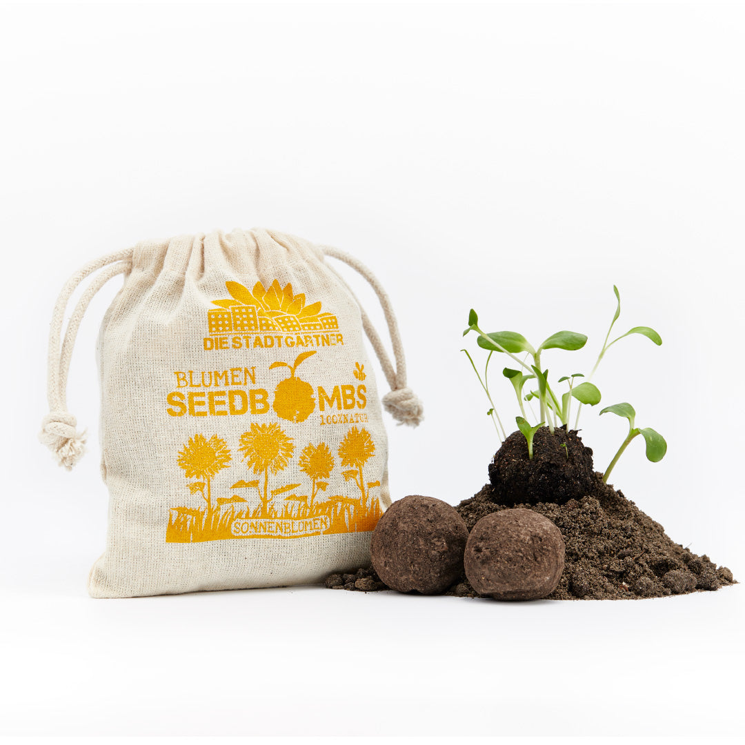 Samenbomben "Sonnenblumen" im Jutebeutel