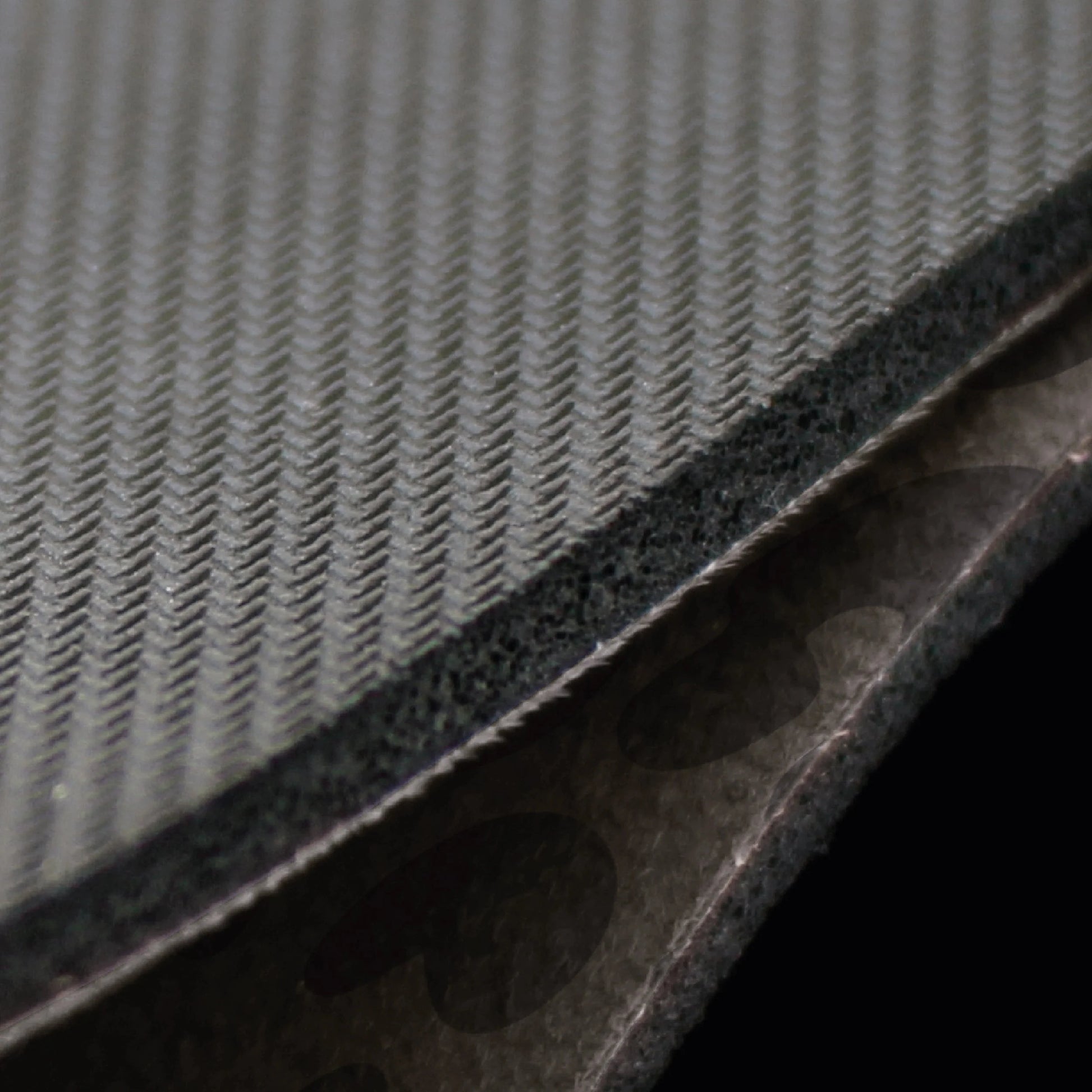 Die Oberfläche besteht aus Mikrofaser aus recyceltem PET und sorgt für eine sanfte, angenehme Haptik, während sie beim Schwitzen eine herausragende Griffigkeit entfaltet. Dank der effektiven Feuchtigkeitsaufnahme bleibt die Matte auch bei intensiven Übungen rutschfest.
