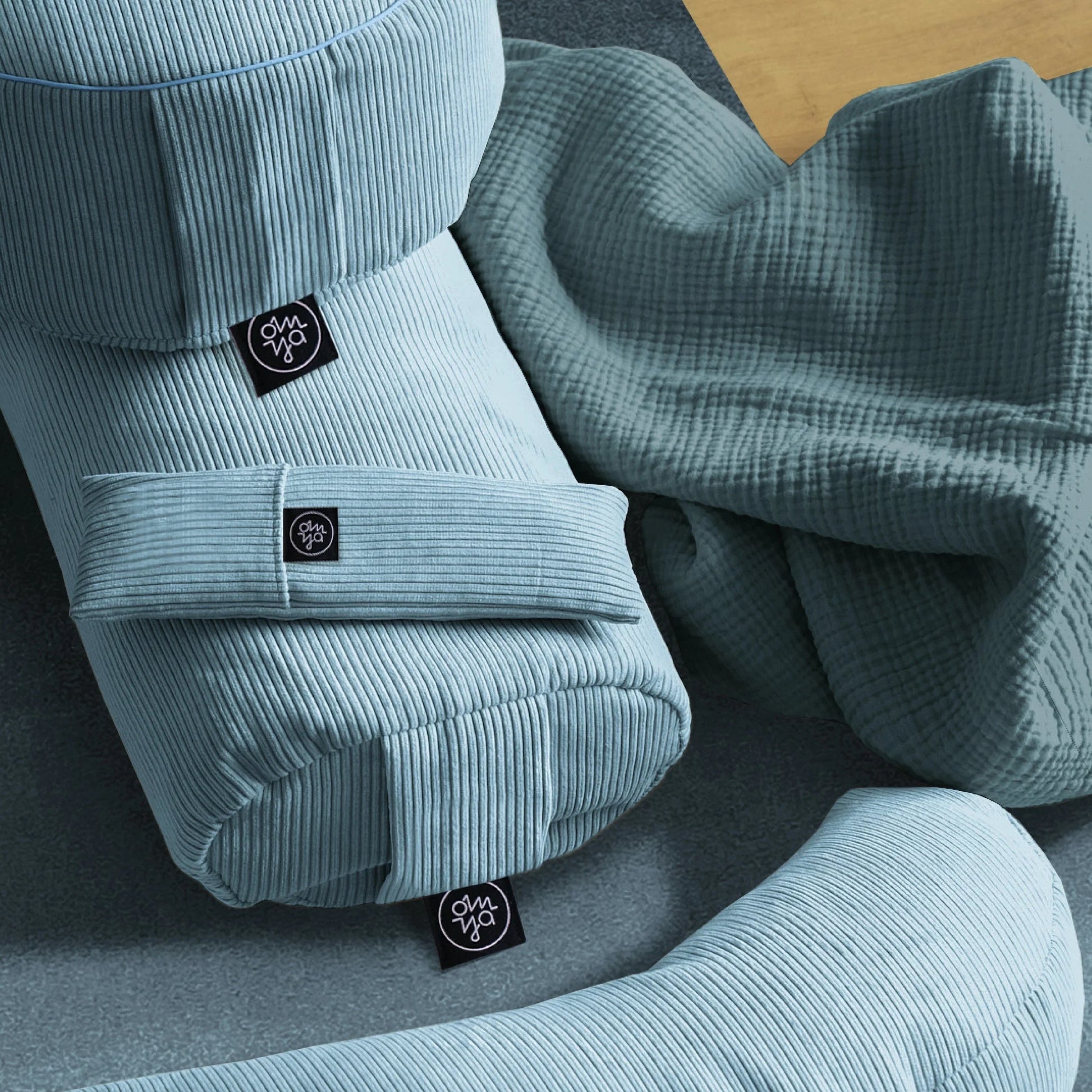 Erlebe tiefe Entspannung am Ende deiner Yoga-Praxis mit der Shavasana Decke aus Aqua Musselin von OM YA Design. Diese Decke ist speziell für die Shavasana-Phase konzipiert und begleitet dich sanft in eine Zone der Ruhe.