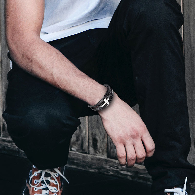 Der SILVER HEAVEN Lederarmband Unisex vereint stilvolle Eleganz mit symbolischer Tiefe. Das markante Kreuzelement aus Edelstahl macht dieses Armband zum Blickfang – ein Ausdruck von Glauben, Stärke und Verbindung, getragen von Herren und Damen gleichermaßen.