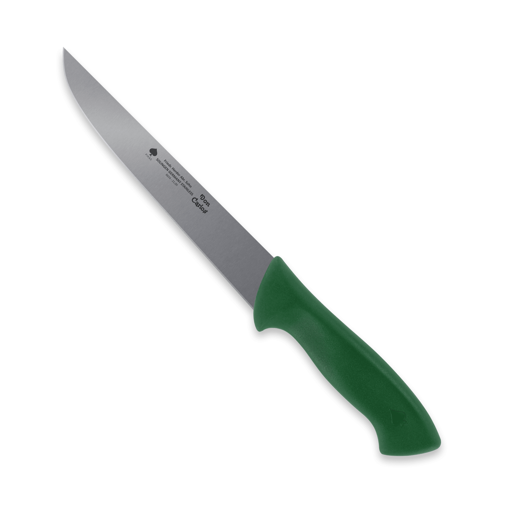 Das Stechmesser, auch bekannt als Zuschneidemesser, ist das vielseitige Werkzeug für präzise Schnitte in Fleisch, Fisch und Gemüse. Ursprünglich für feine Zerlegearbeiten in der Fleischverarbeitung entwickelt, überzeugt es heute durch seine Vielseitigkeit in der Küche. Die scharfe Klinge aus rostfreiem Solinger Stahl sorgt für saubere, kontrollierte Schnitte, während der ergonomische Kunststoffgriff sicheren Halt bietet. Robust, langlebig und ideal für Profis und ambitionierte Hobbyköche.