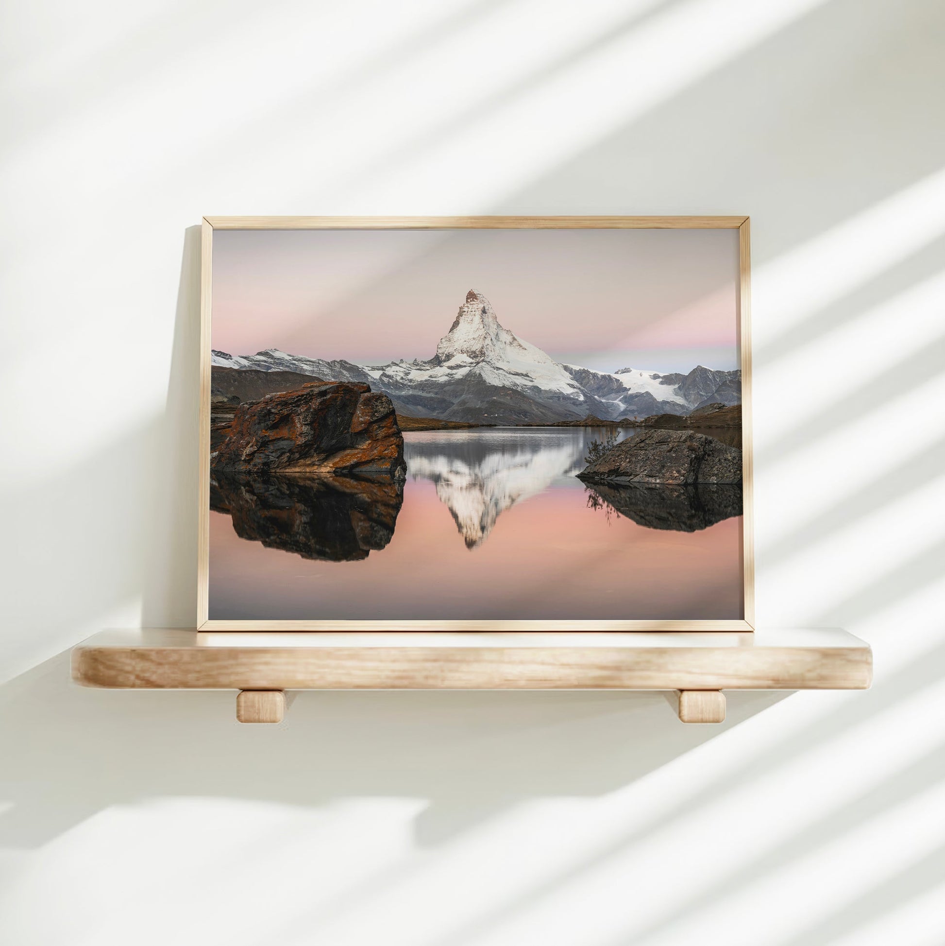 The Matterhorn’s reflection in Stellisee at sunrise—soft light, crisp air, and a perfect alpine moment.