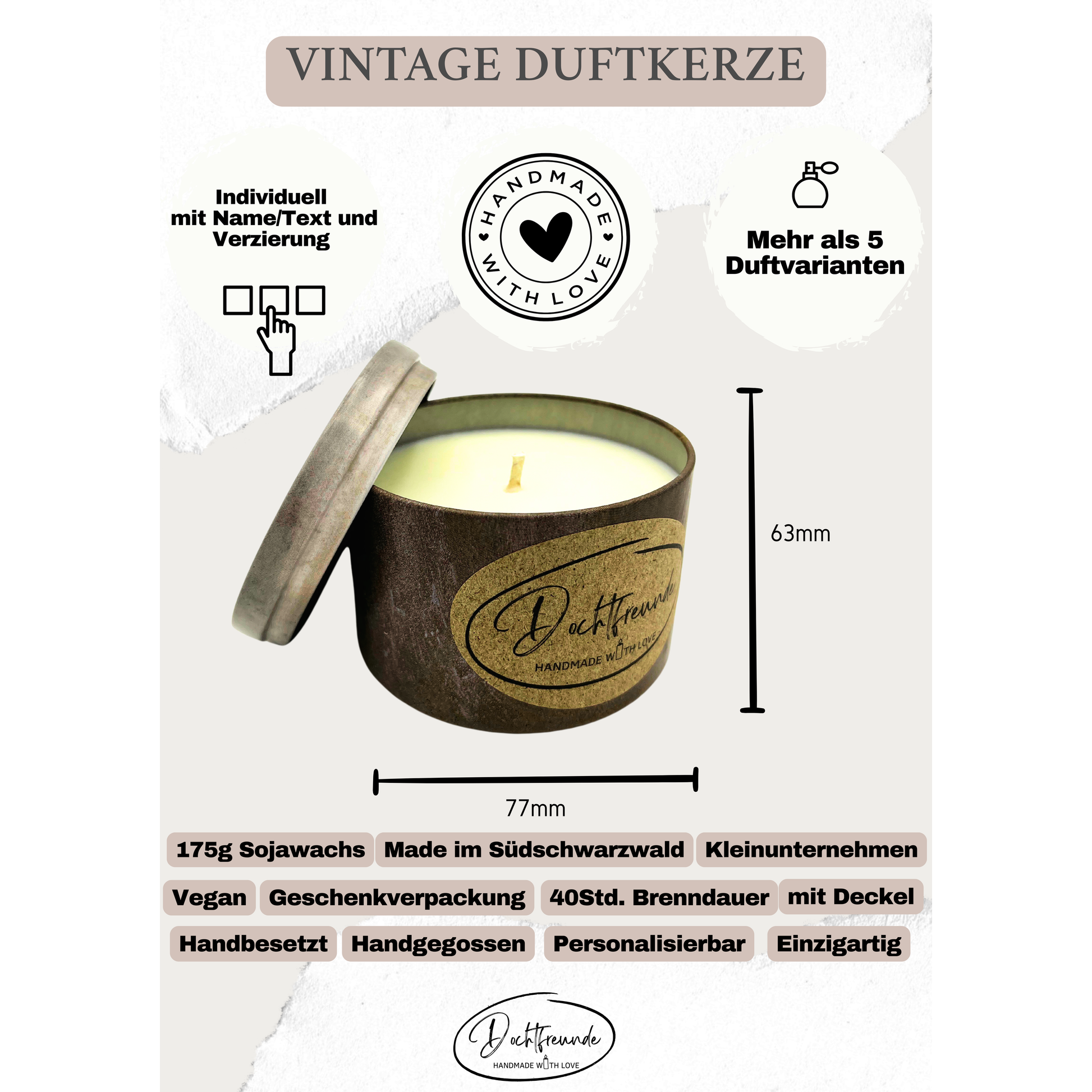 Materialzusammensetzung: 95% Sojawachs, 5% Duftöl