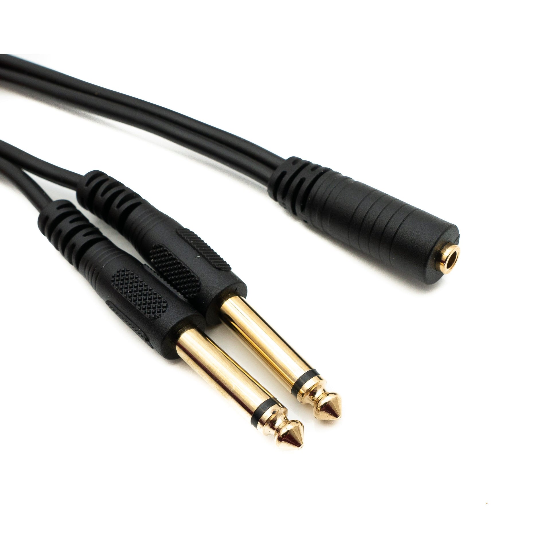 SYSTEM-S Audio Y Kabel 150 cm Stereo AUX Klinke 6,35 mm Stecker & Stecker zu 3,5 mm Buchse in Schwarz