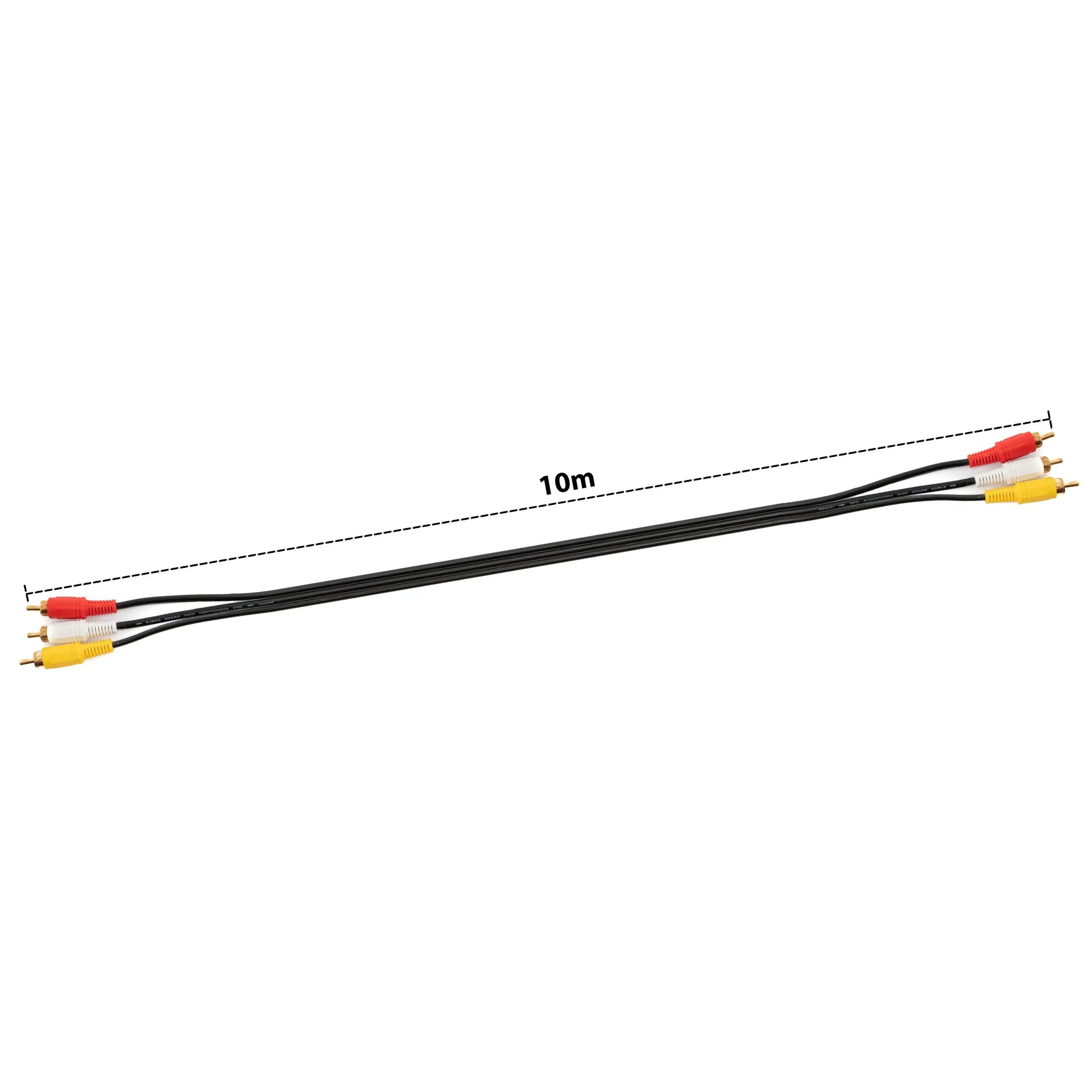 Cinch 3 RCA Kabel 10 Meter Hochwertig Stecker Zu Stecker Stereo Und Composite AV Schwarz