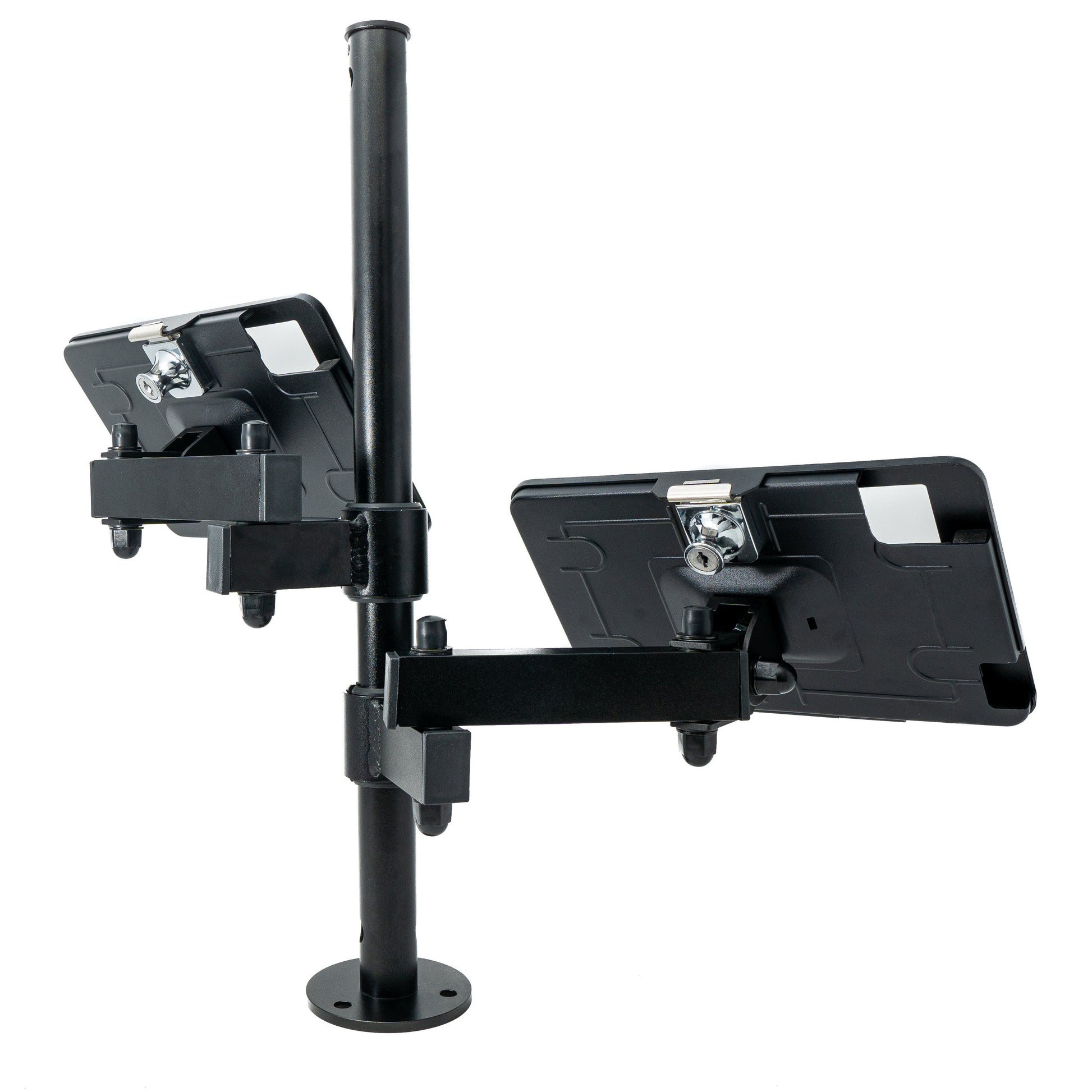 Die SYSTEM-S Doppel Tischhalterung ist eine vielseitige und sichere Lösung für die Platzierung von zwei iPad Mini 6 (2021) Tablets auf Tischen und Oberflächen. Sie bietet flexible Positionierungsmöglichkeiten und eine abschließbare Funktion für zusätzlichen Schutz.