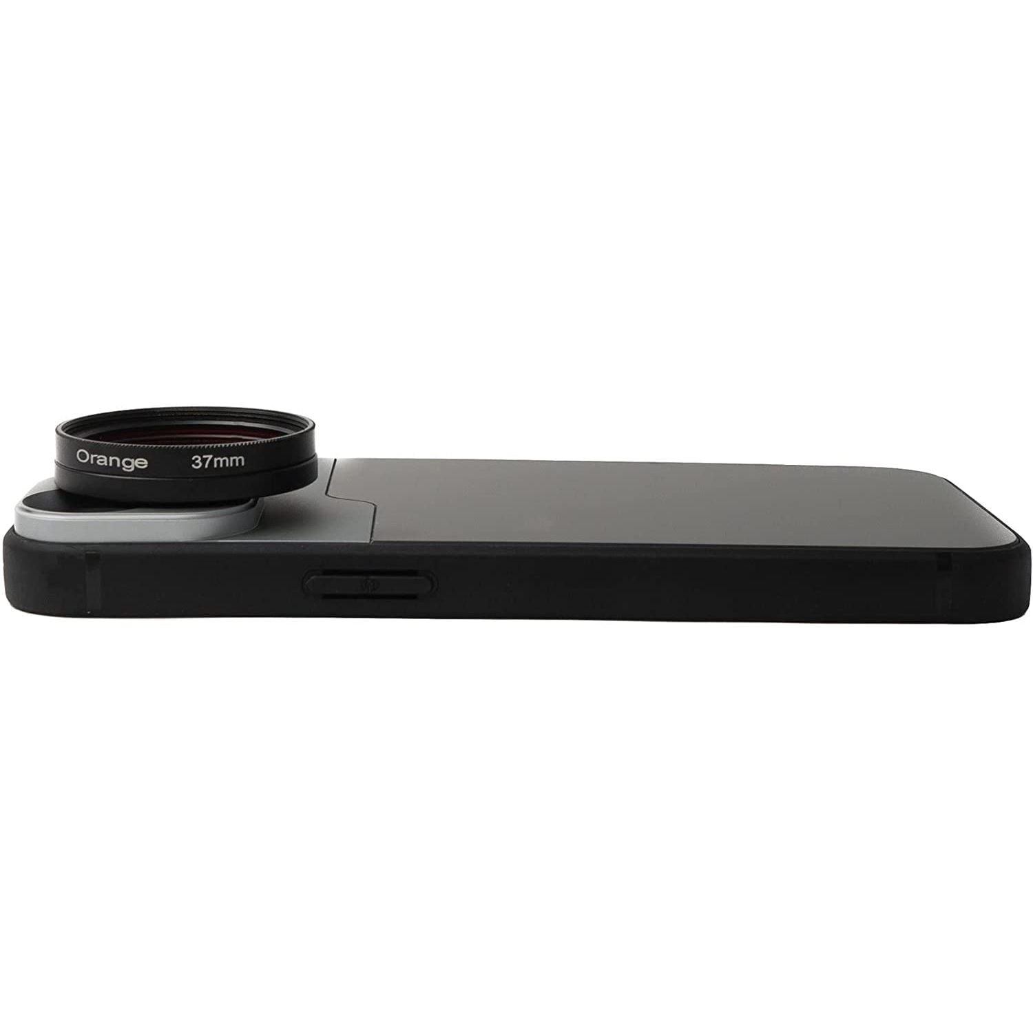 Lieferumfang: Hartschale mit Gewinde, Aufsatz und Linsen (Blau, Rot, Orange, Gelb, Grün, Lila) für iPhone 14