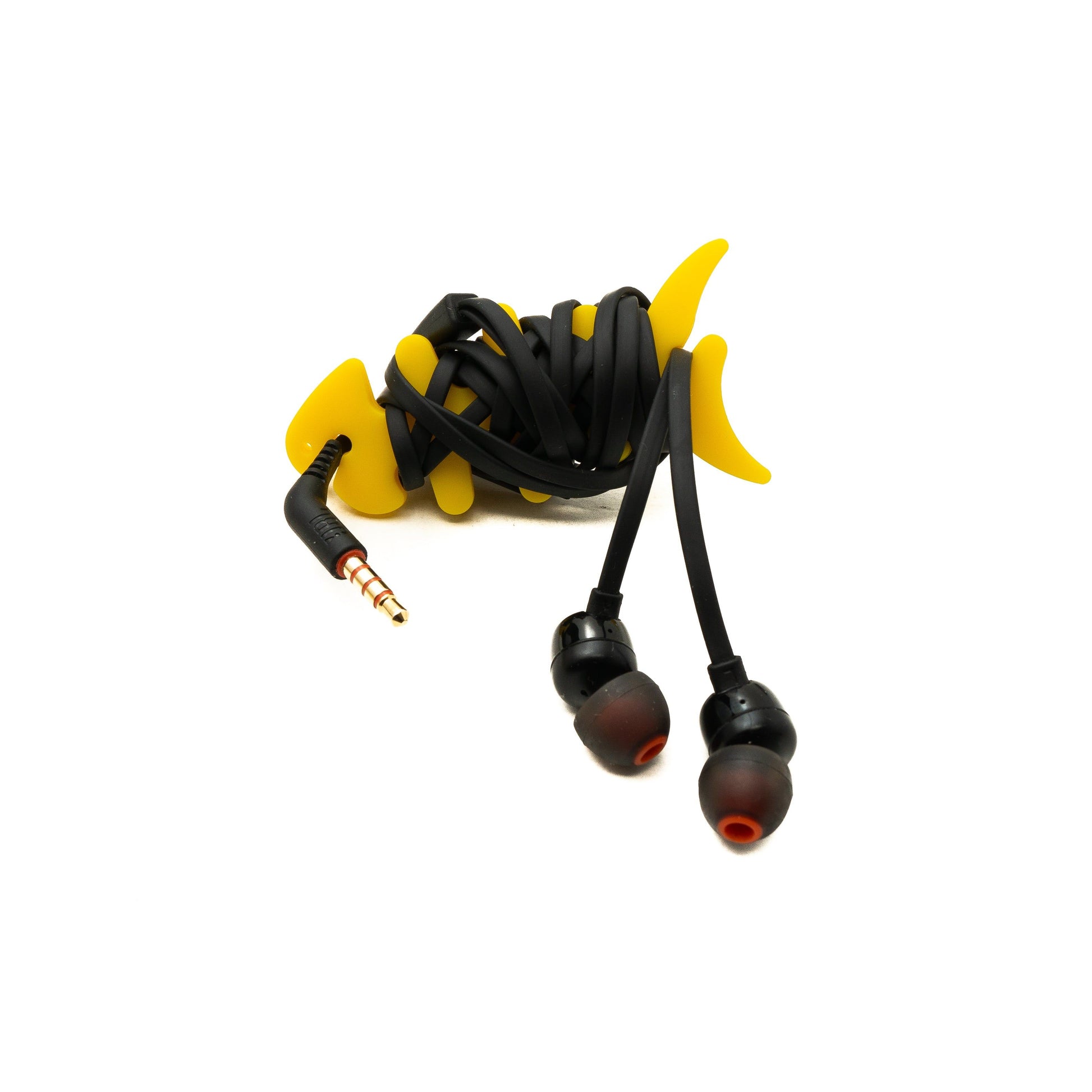 SYSTEM-S Kabelmanager Wrap Kabelaufroller Fischform Silikon Aufwickler Kabelschutz für Kopfhörer in Gelb