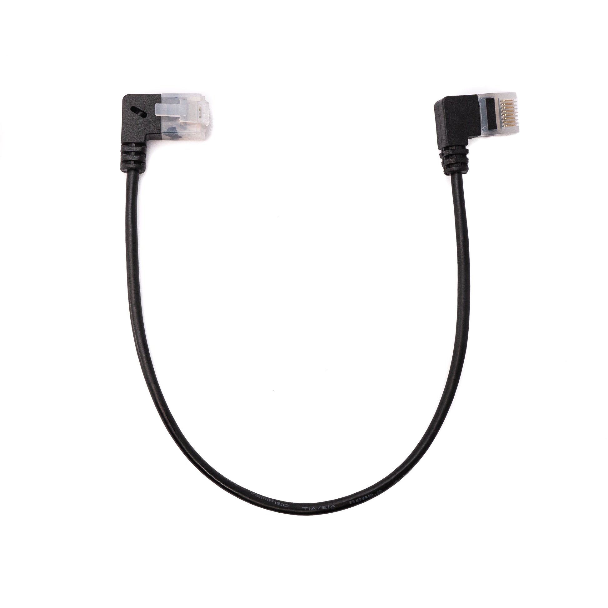 Winkeladapter: Das Kabel verfügt über einen linksgewinkelten RJ45-Stecker an einem Ende und einen rechtsgewinkelten RJ45-Stecker am anderen Ende. Diese Bauweise ermöglicht eine flexible Installation und eignet sich besonders gut für Bereiche mit eingeschränktem Platz.