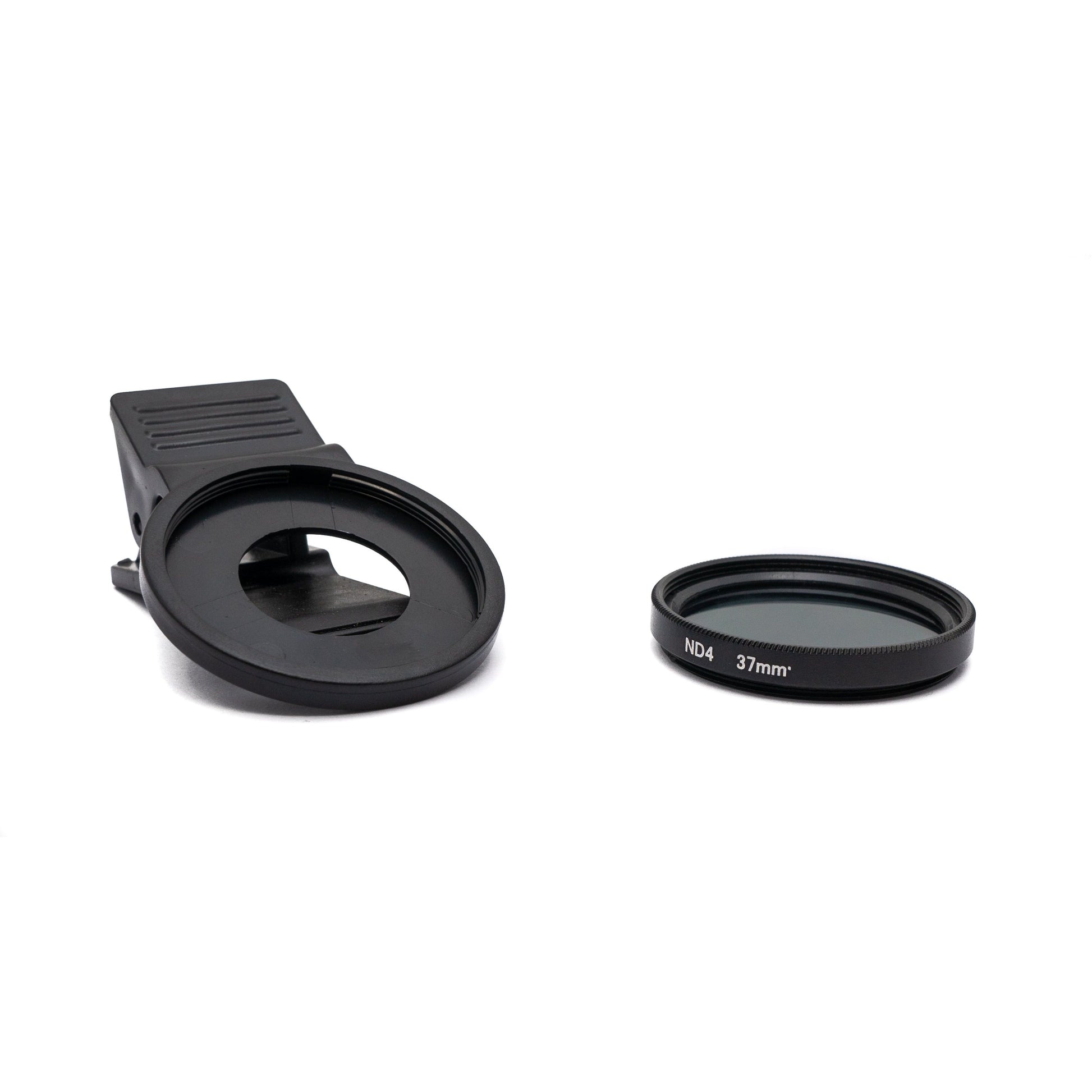 Clip mit anschraubbarem ND4-Filter für (Smartphone-)Fotografiearbeit