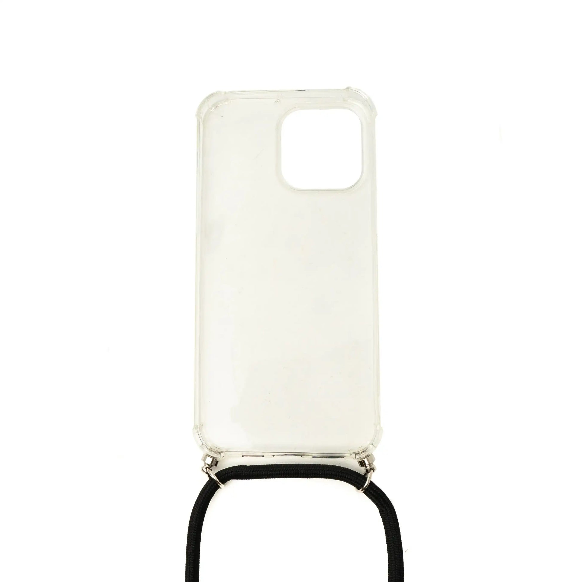 - Einstellbares schwarzes Halsband für komfortables Tragen des Smartphones um den Hals.