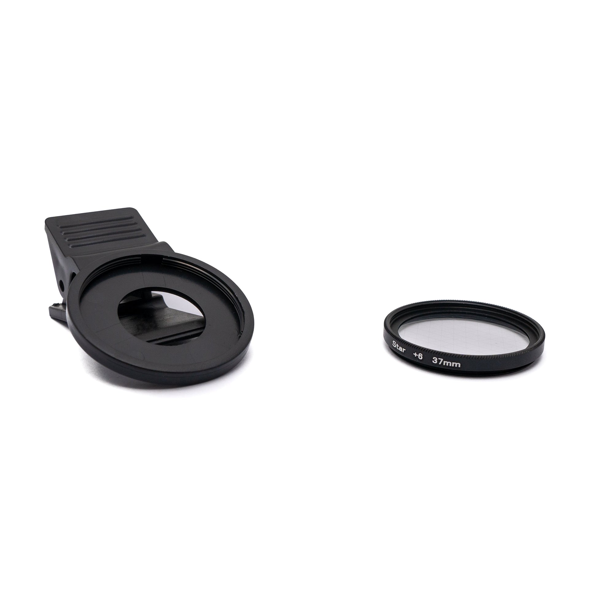 Mit dieser 6-Punkt-Sternfilter-Linse können Sie einzigartige Fotos mit einem Sterneffekt erstellen. Die Linse wird mit einem Clip an Ihr Smartphone oder eine andere Kamera mit einem Standard-Filtergewinde befestigt.