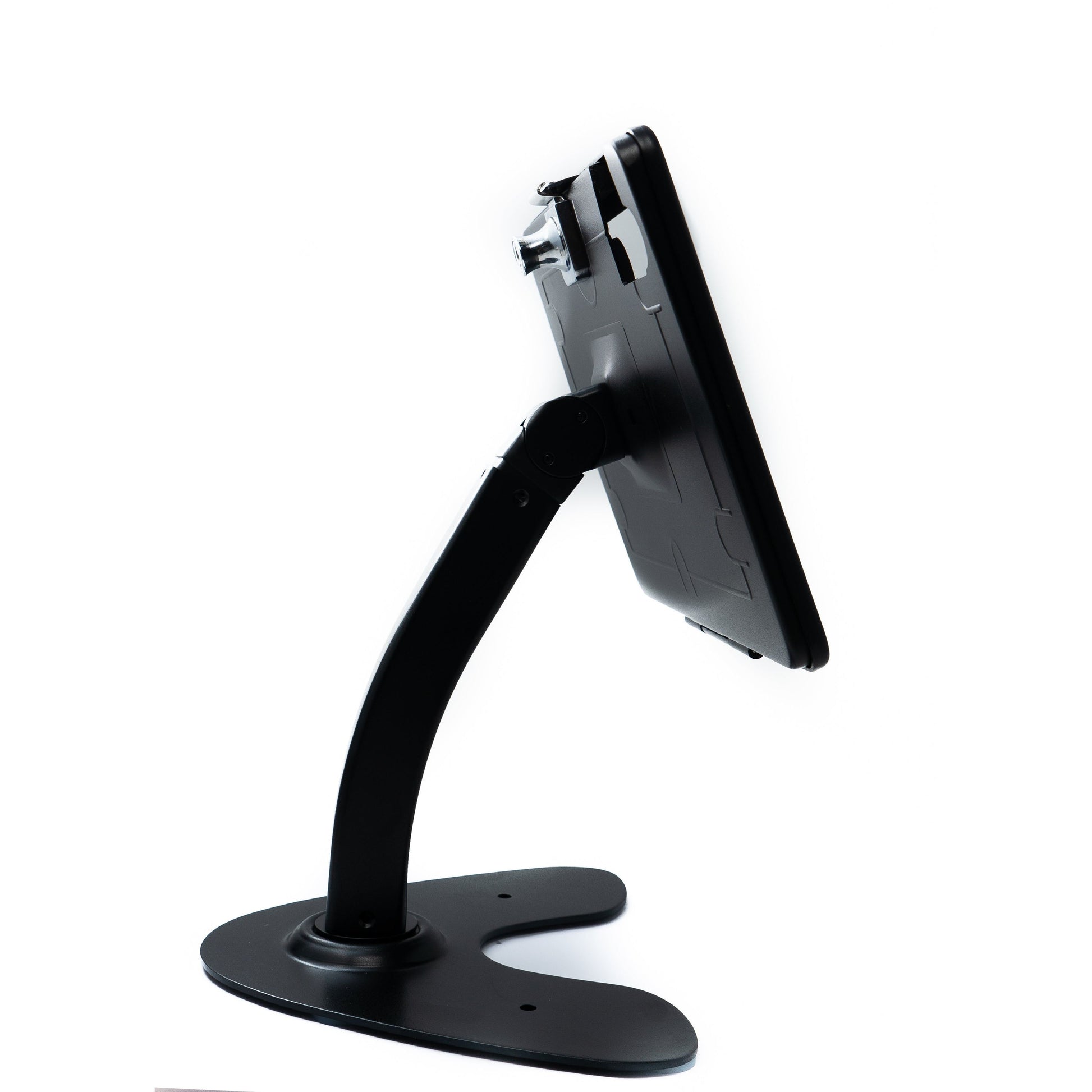 Diese Halterung kann auf horizontalen Oberflächen (bspw. Tischen) angebracht bzw. gestellt werden.