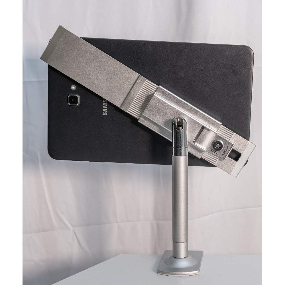 Diese robuste und sichere Tischhalterung eignet sich ideal für den Einsatz in Geschäften, Restaurants, Schulen oder anderen öffentlichen Bereichen, wo Tablets sicher und zugänglich gehalten werden müssen.