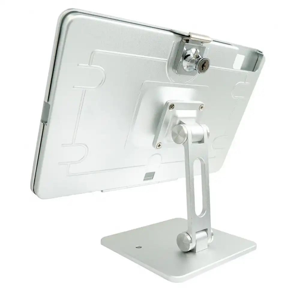 Diese Halterung in trendigem Design ist für das iPad Pro konzipiert und integriert Effizienz und Sicherheit für Ihre Messeschau. Die Schutzhülle ist 360° rotierbar, außerdem kann der Neigungswinkel verstellt werden. Das eingebaute Schloss verhindert Ladendiebstähle. Die Halterung eignet sich ideal für Messen, Ausstellungen, Ladenflächen und vielen mehr.
