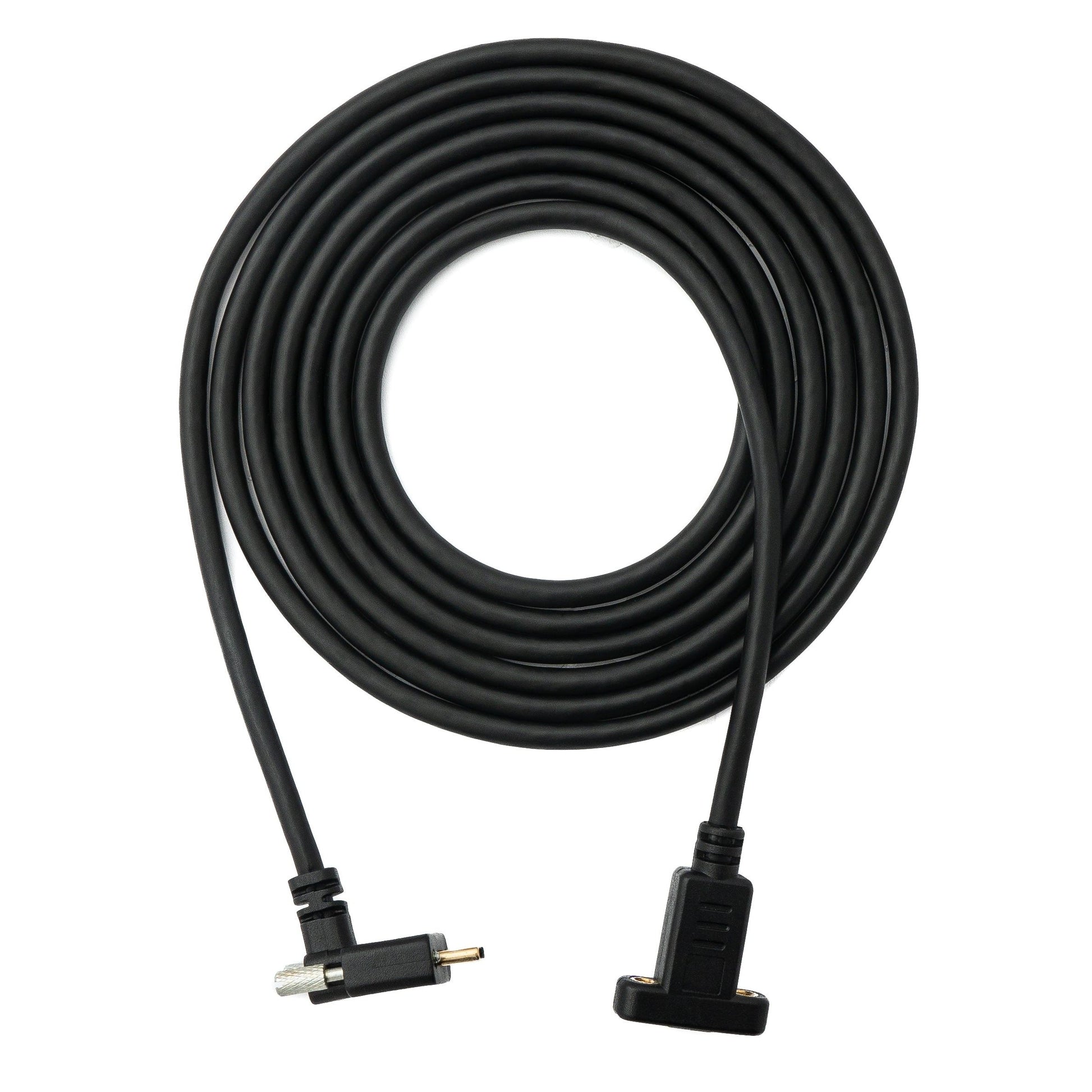 - Beide Anschlüsse sind anschraubbar (Panel Mount) und der C-Stecker ist gewinkelt (down-/up-angled) für flexible Montagemöglichkeiten.