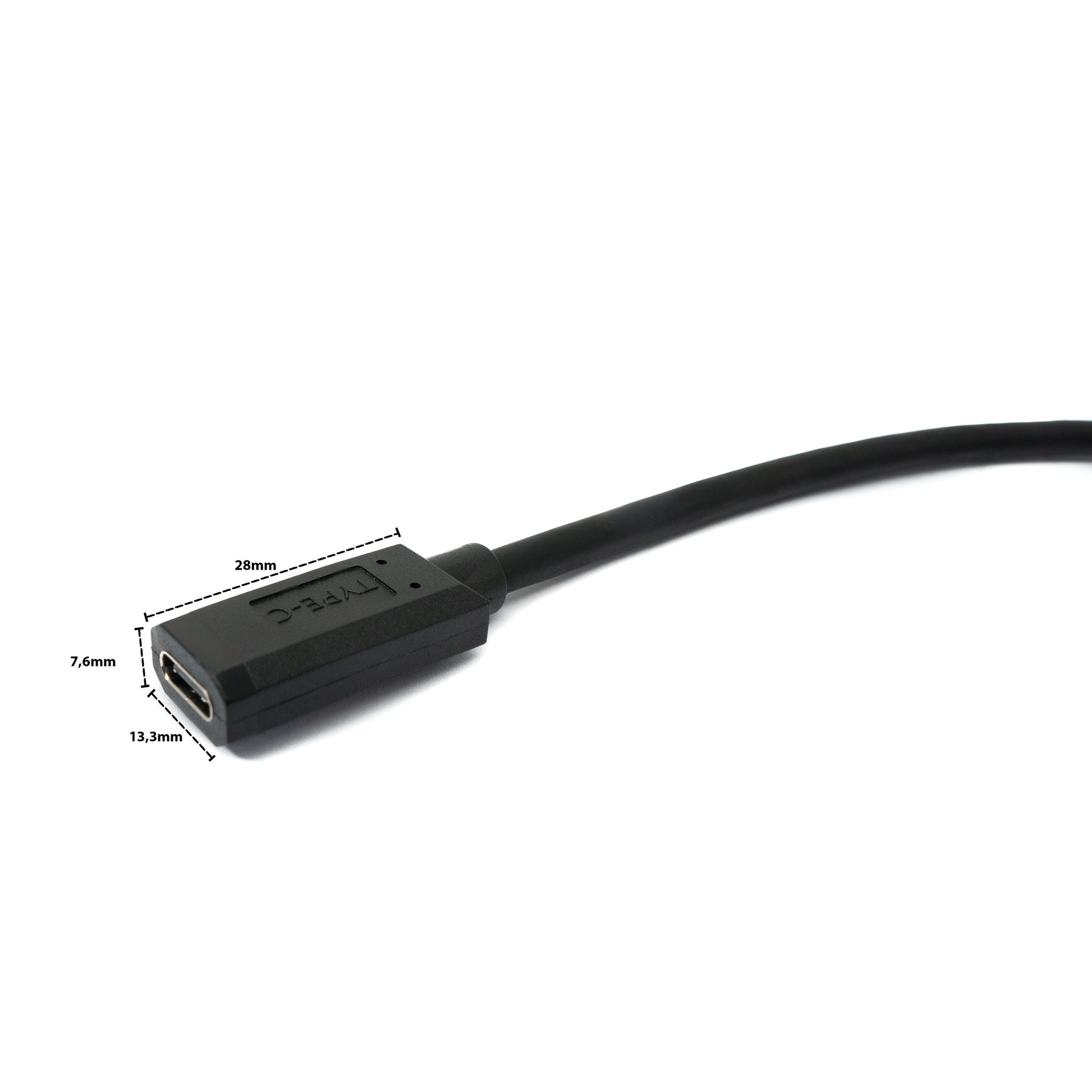 Maße und Gewicht: Der Stecker hat Abmessungen von 2,8 x 1,3 x 2,1 cm (L x B x H), während die Buchse 3,2 x 1,3 x 0,7 cm misst. Das Produkt wiegt 58 g, während das Gewicht der Verpackung nur 3 g beträgt.