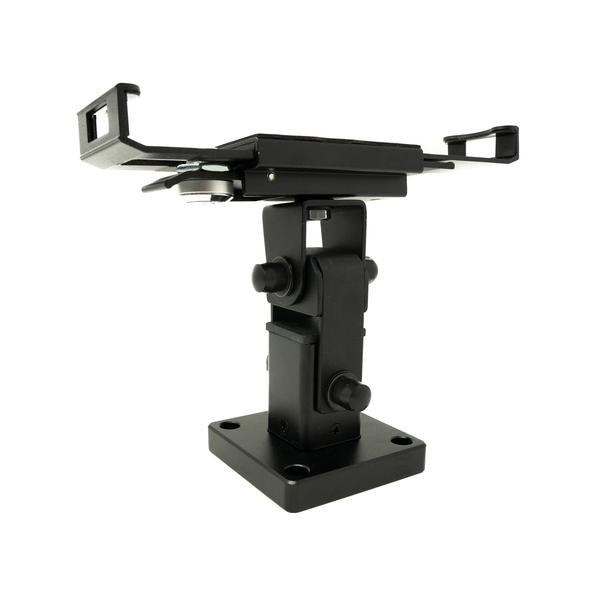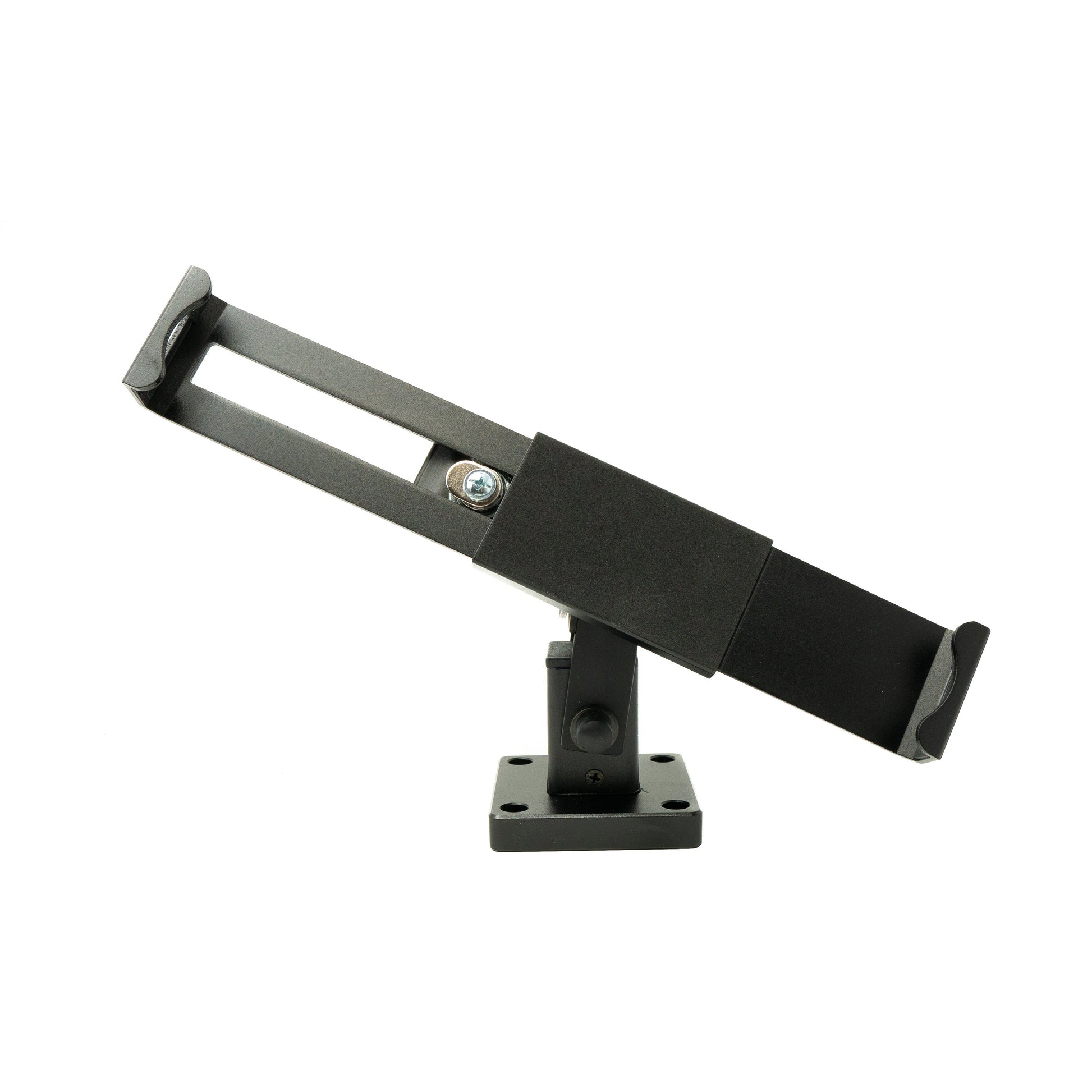 Diese Halterung in trendigem Design integriert Effizienz und Sicherheit für Ihre Messeschau. Die Schutzhülle ist zu allen Seiten um 180° neigbar. Das eingebaute Schloss verhindert Ladendiebstähle. Die Halterung eignet sich ideal für Messen, Ausstellungen, Ladenflächen und vielen mehr.