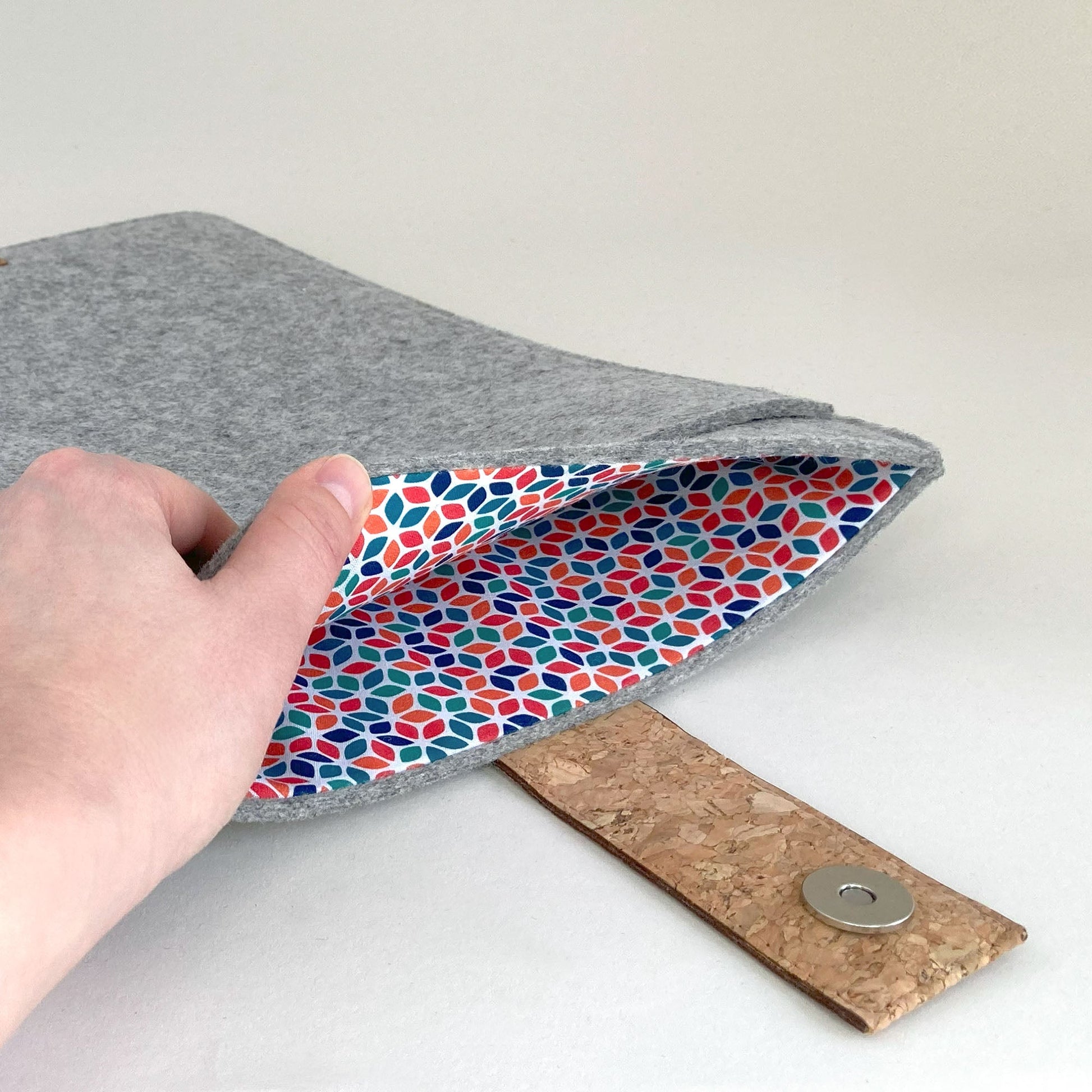 Tablet Hülle nach Maß | mit Magnetverschluss und extra Fach | hellgrau - Colorful | Modell "HAKA"