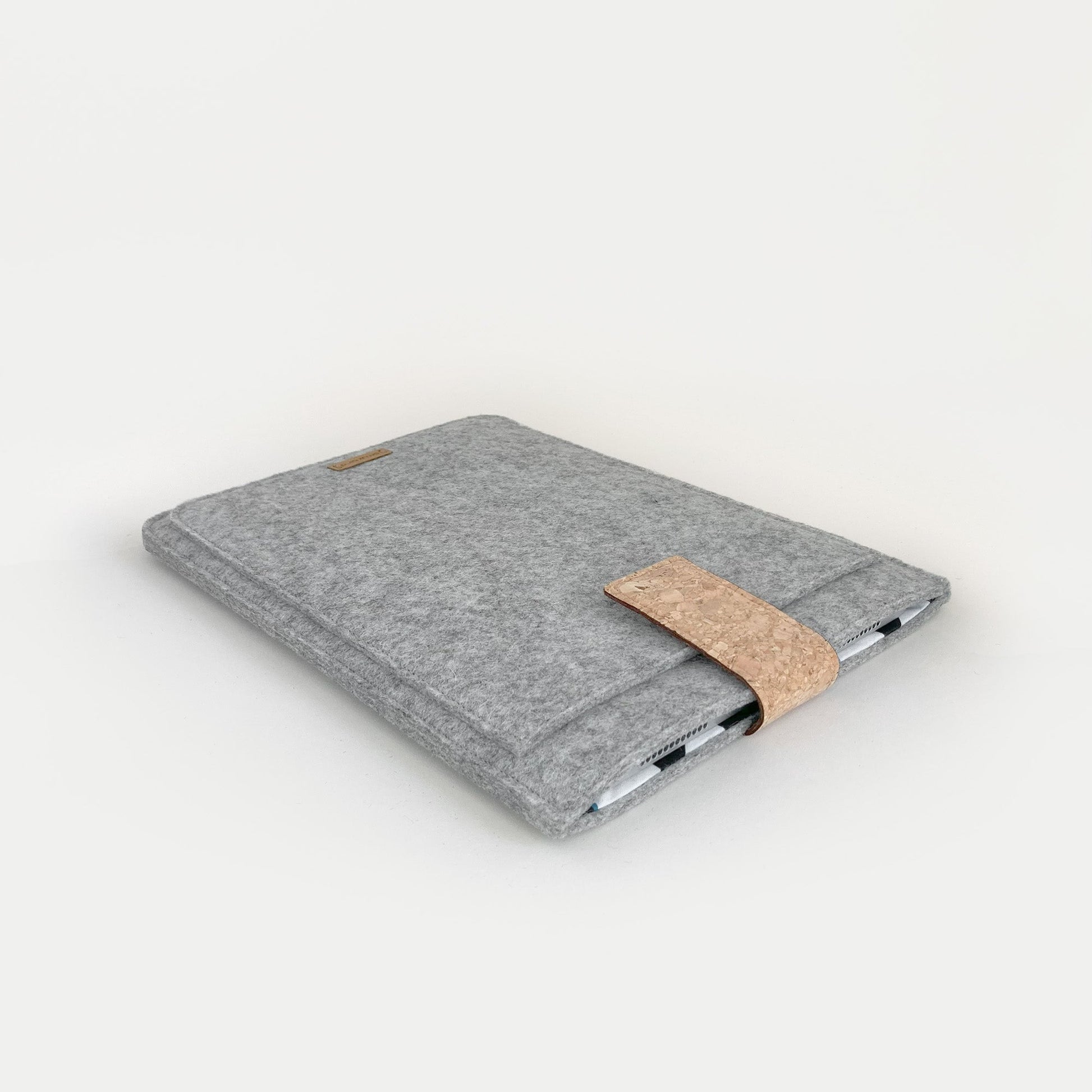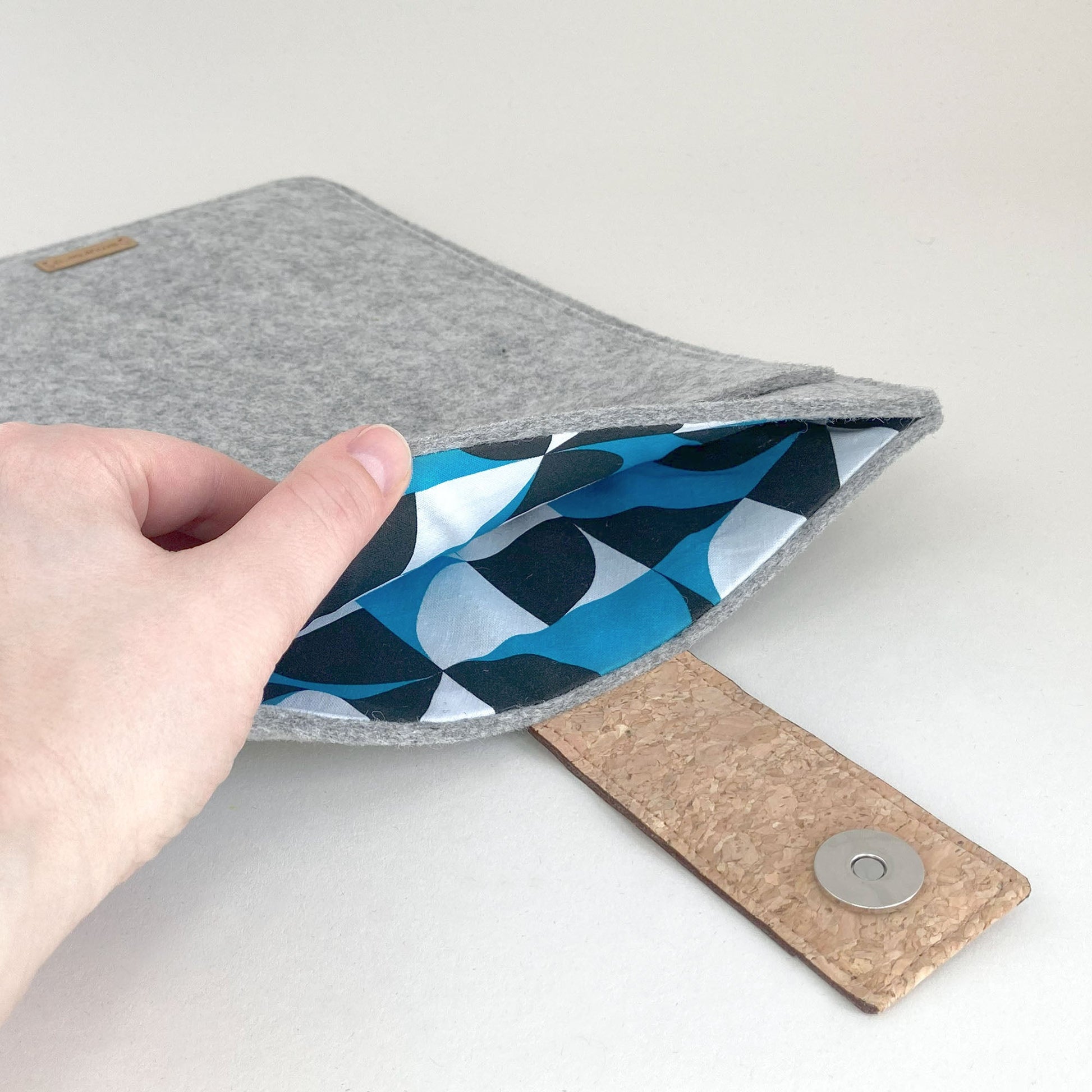 Tablet Hülle nach Maß | mit Magnetverschluss und extra Fach | hellgrau - Shapes | Modell "HAKA"