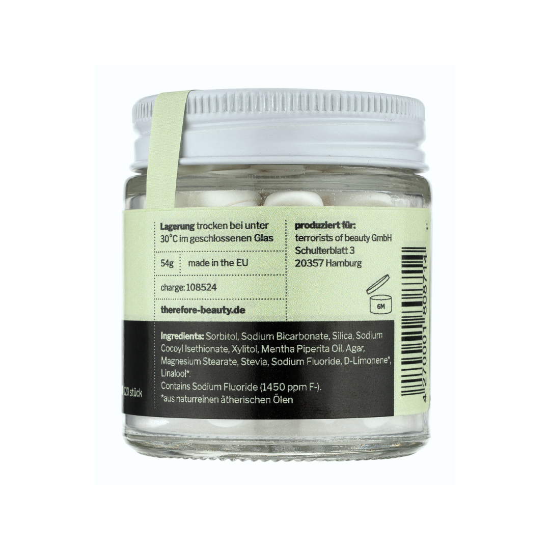 Zahnputztabletten 002: Die erfrischende, feste Zahnpasta mit Minze – nachhaltig, plastikfrei und perfekt portioniert. Mit dieser innovativen Alternative verabschiedest du dich von Plastiktuben und holst frischen Atem sowie strahlend saubere Zähne direkt in dein Badezimmer.