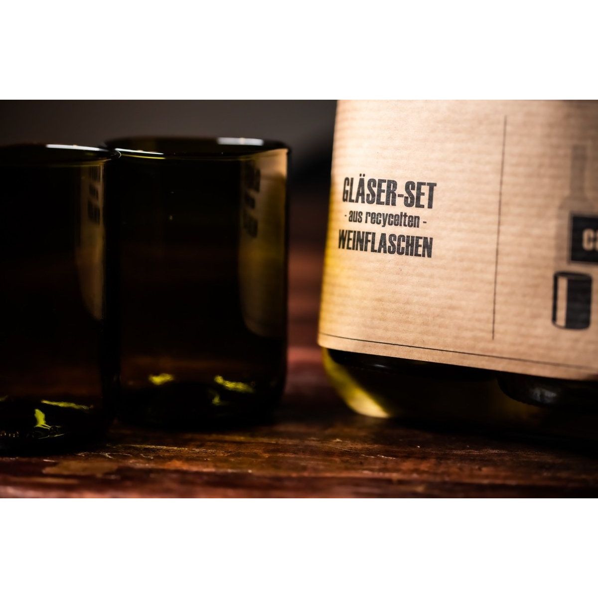 Trinkgläser aus recycelten Weinflaschen – Upcycling-Glasgenuss in zeitlosem Design. Handgefertigt und robust, erzählt jedes Glas die Geschichte einer ehemaligen Weinflasche und wird zu einem stilvollen, langlebigen Alltagsbegleiter.