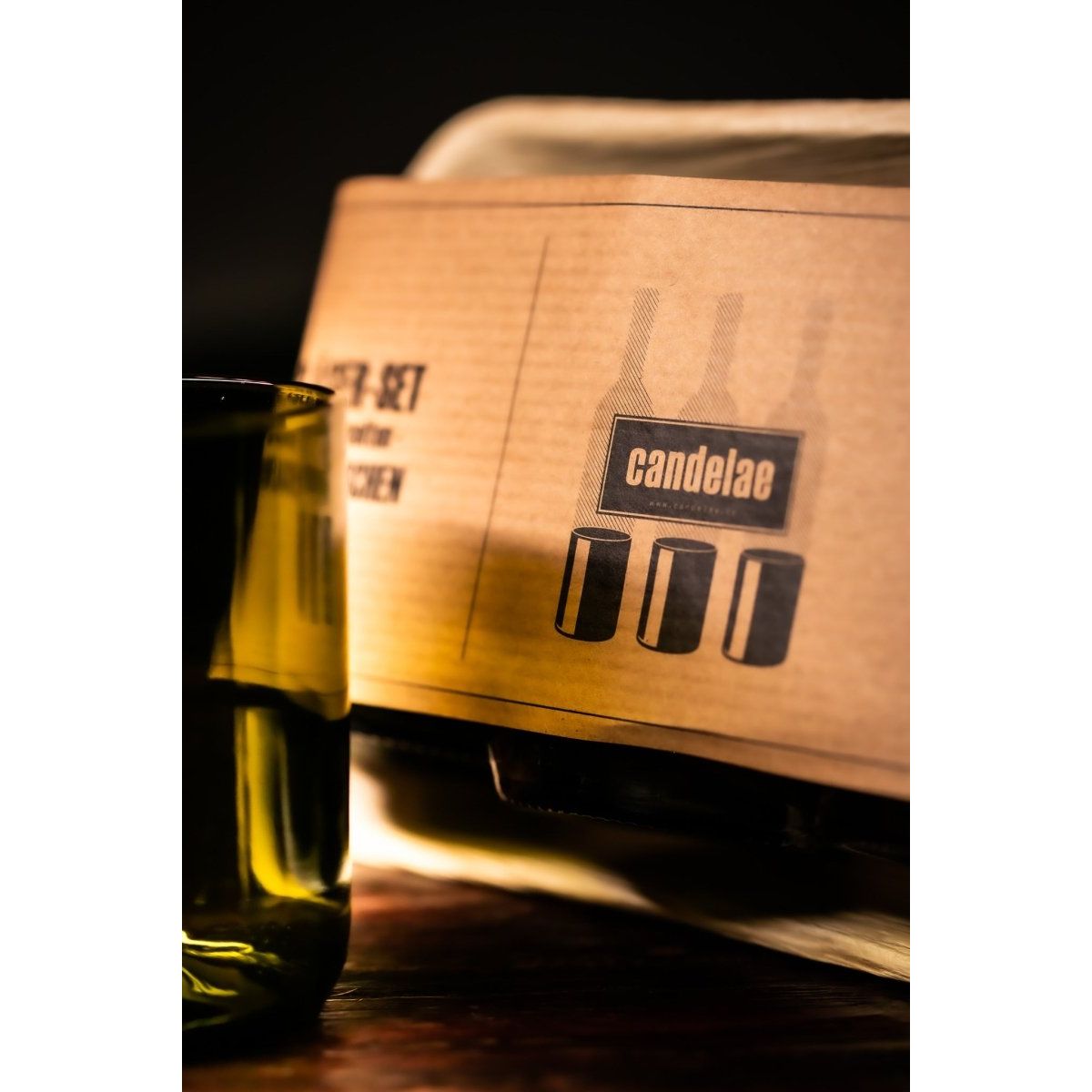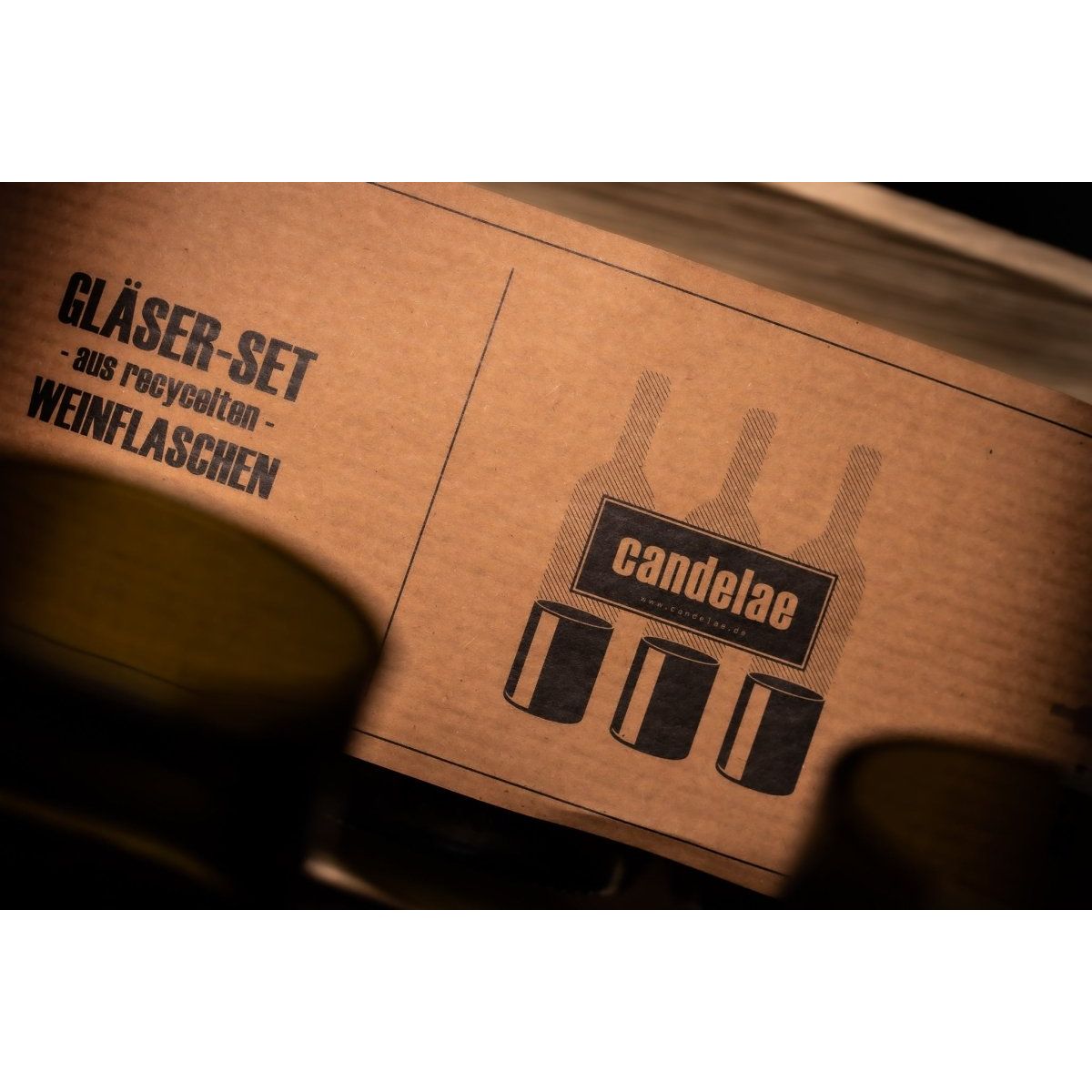 Material: Recyceltes Glas (ehemalige Weinflaschen)