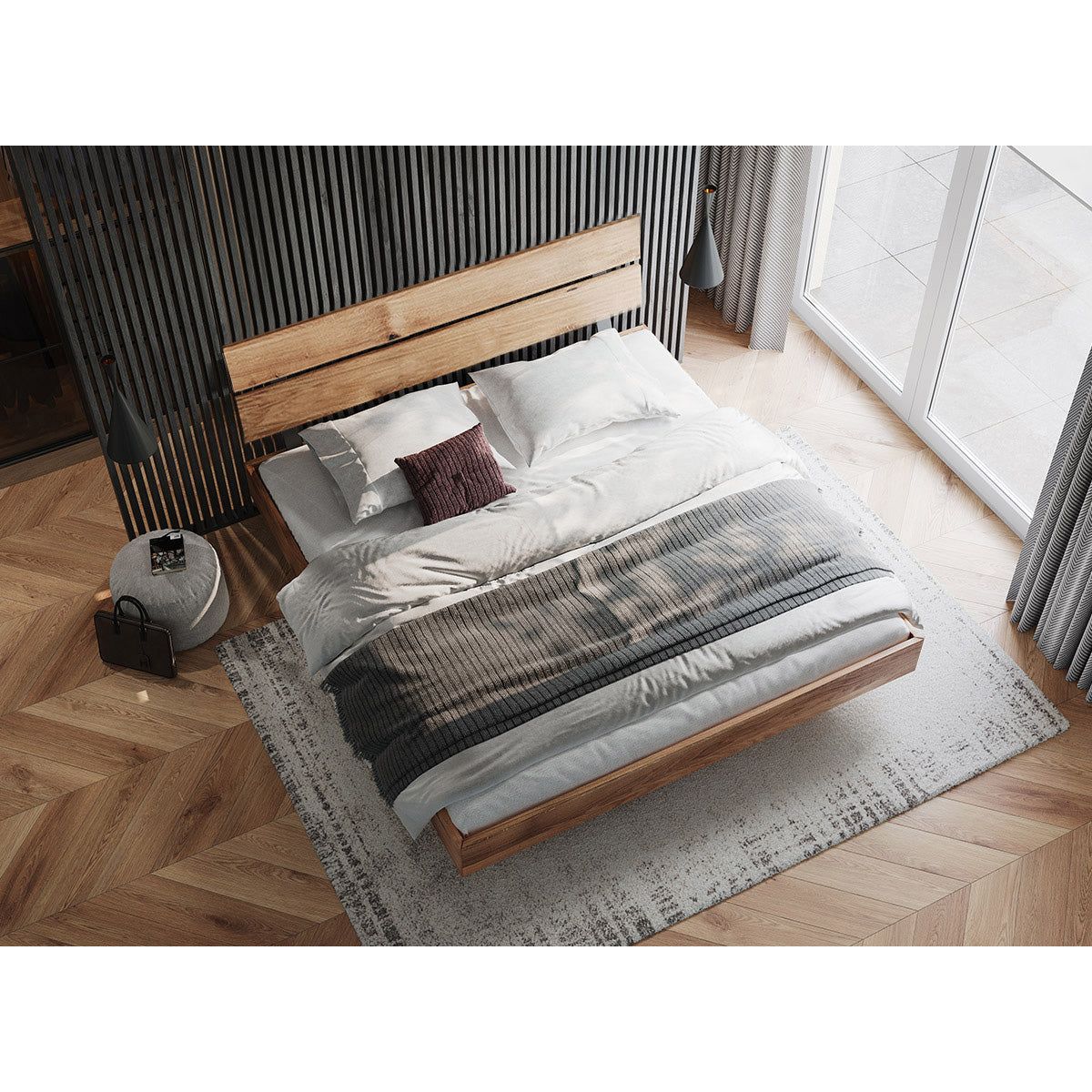 Hinweise auf industrielle Innenräume erfreuen sich seit einigen Jahren ungebrochener Beliebtheit. Das Holzbett aus der Turin-Kollektion passt dank der schwarzen Metallelemente perfekt in diesen Stil. Übermäßige Strenge und Minimalismus der Loft-Anordnung brechen die natürliche Wärme und den Charme von Massivholz perfekt. Ein Eichenbett mit Holzbeinen macht auch in einem skandinavischen oder modernen Interieur eine gute Figur.