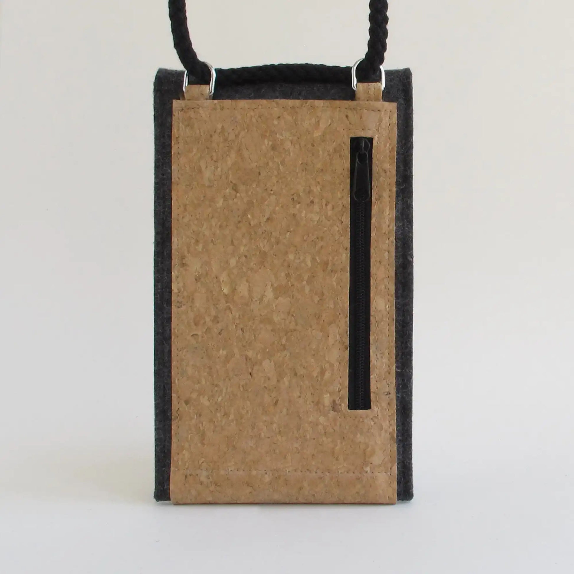 Umhängetasche für Google Pixel 7 Pro | aus Filz und Bio-Baumwolle | anthrazit - tracks | Modell KEDJA