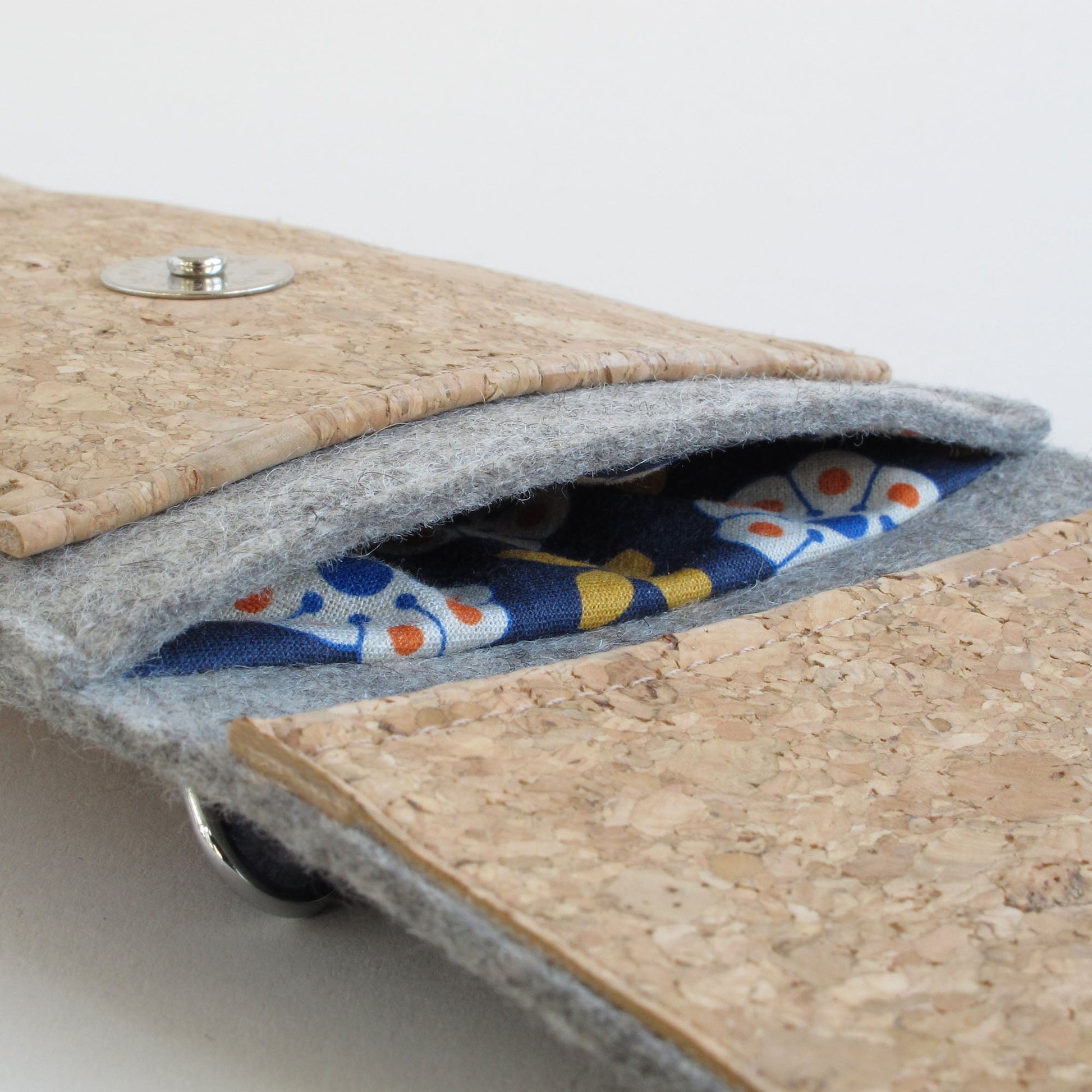 Umhängetasche für iPhone 12 Pro Max | aus Filz und Bio-Baumwolle | hellgrau - bloom | Modell KEDJA