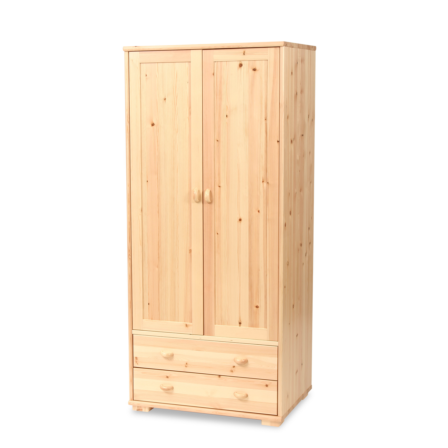 Vanessa Kleiderschrank | 2-Türig mit Kleiderstange und 2-Schubladen | 100% Bio Kiefer Massivholz