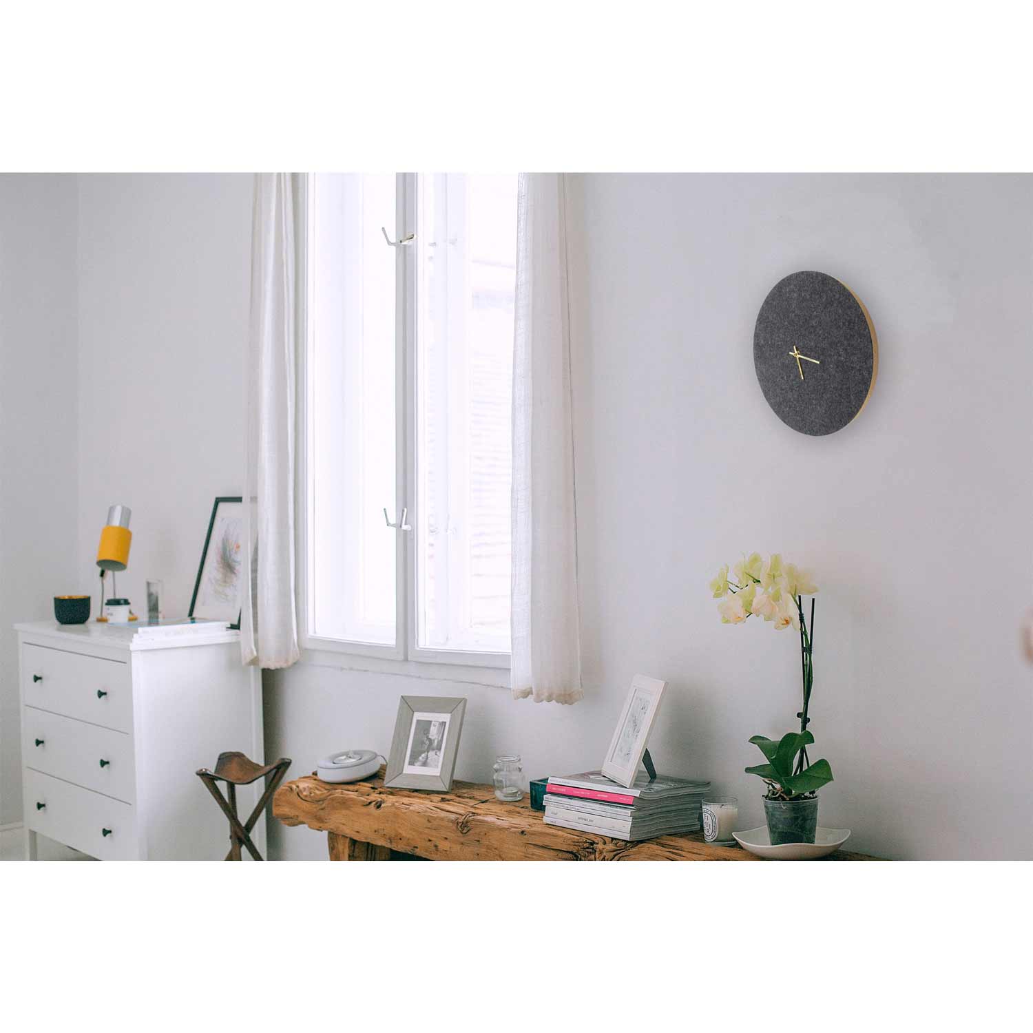 Wanduhr aus Filz und Kork 30 cm | anthrazit - gold | Design: Aalborg