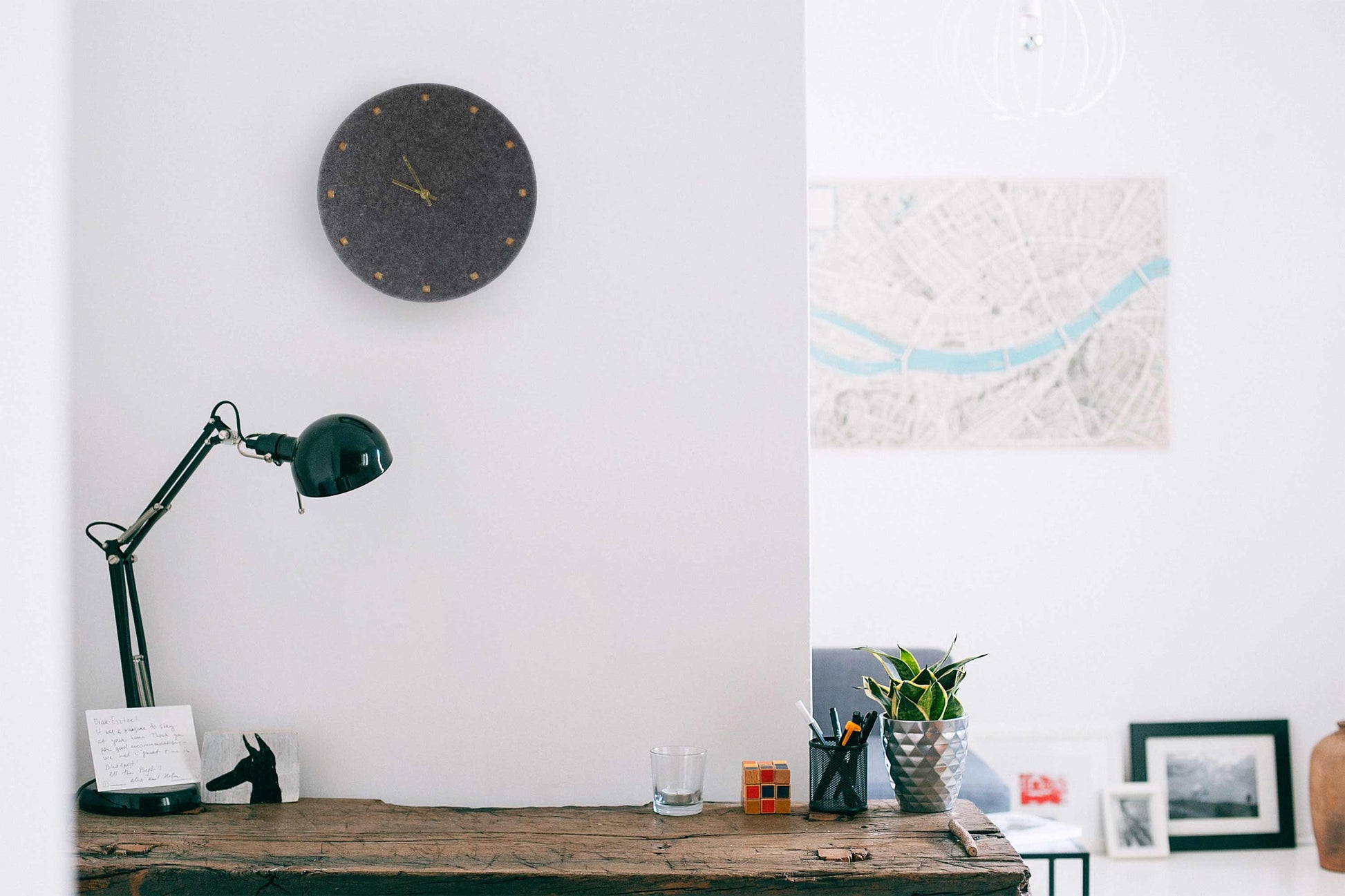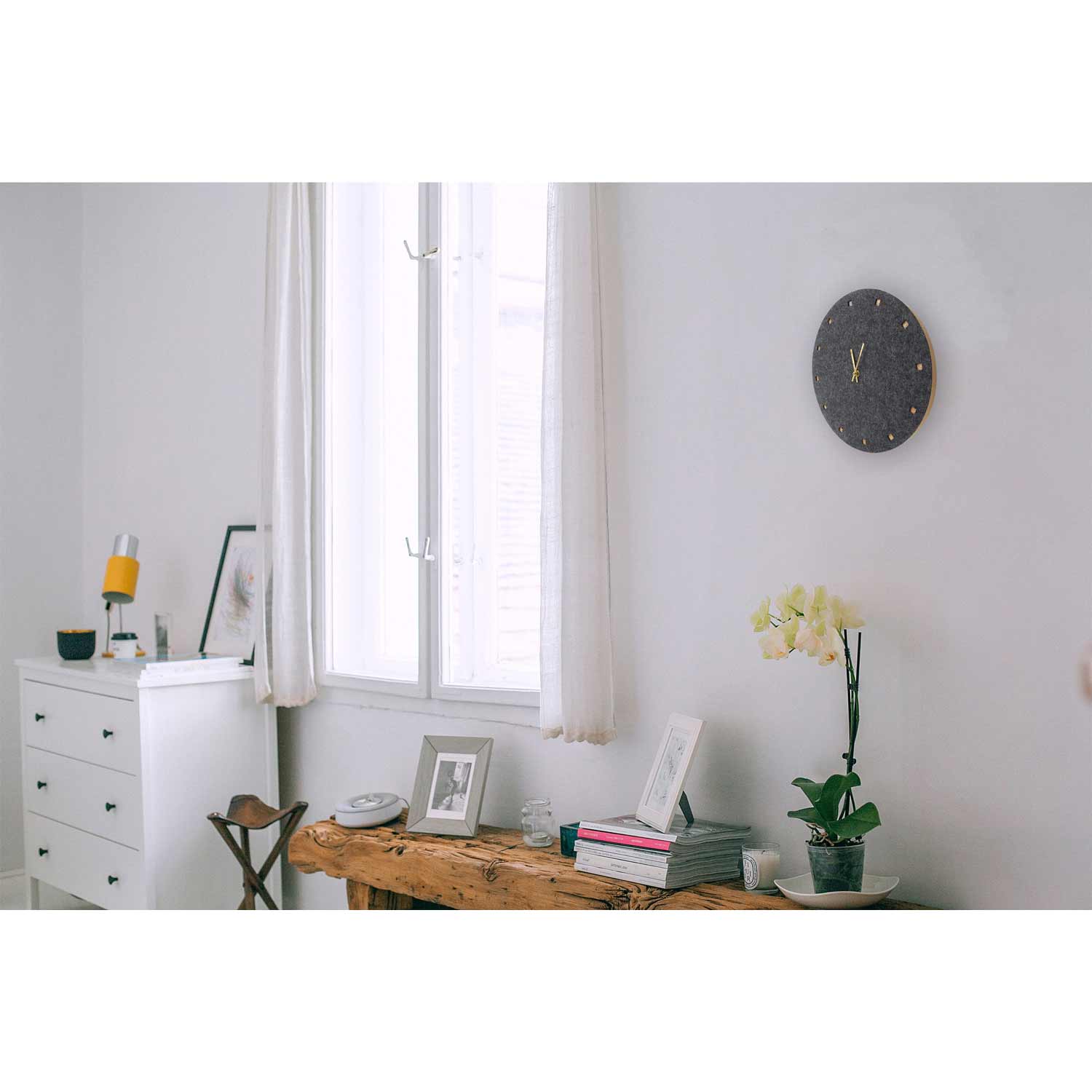 Wanduhr aus Filz und Kork 30 cm | anthrazit - gold | Design: Esbjerg