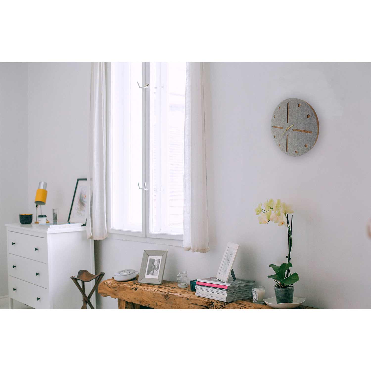 Wanduhr aus Filz und Kork 30 cm | hellgrau - gold | Design: Odense