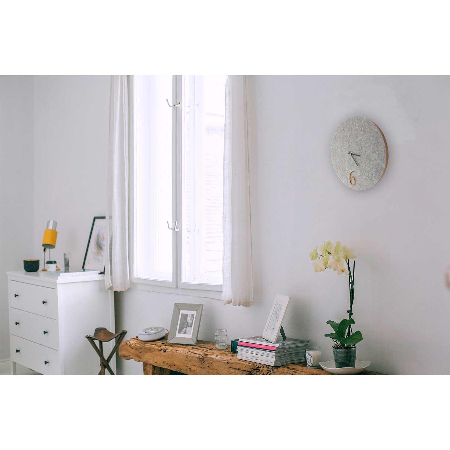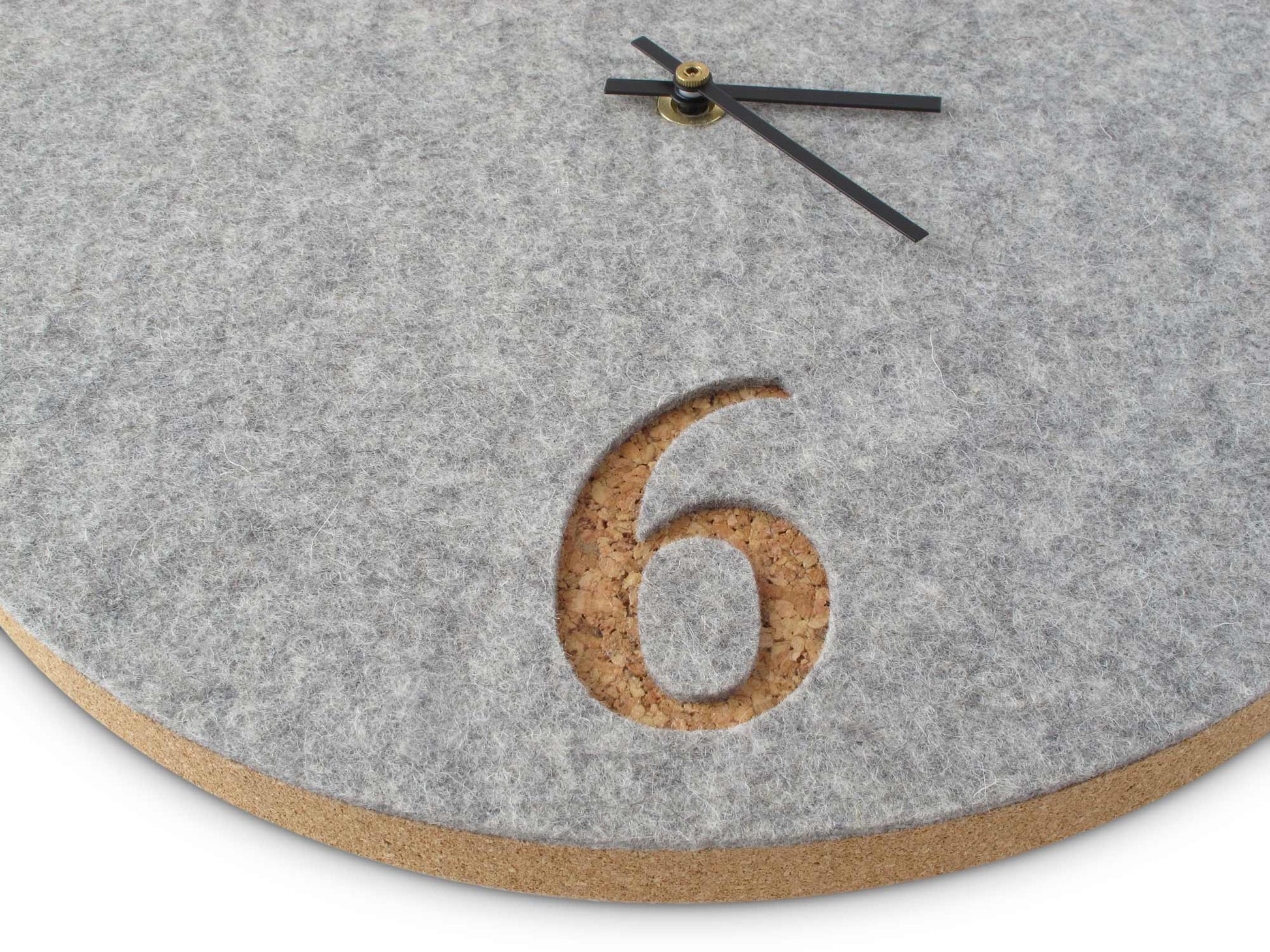 Wanduhr aus Filz und Kork 30 cm | hellgrau - schwarz | Design: Aarhus