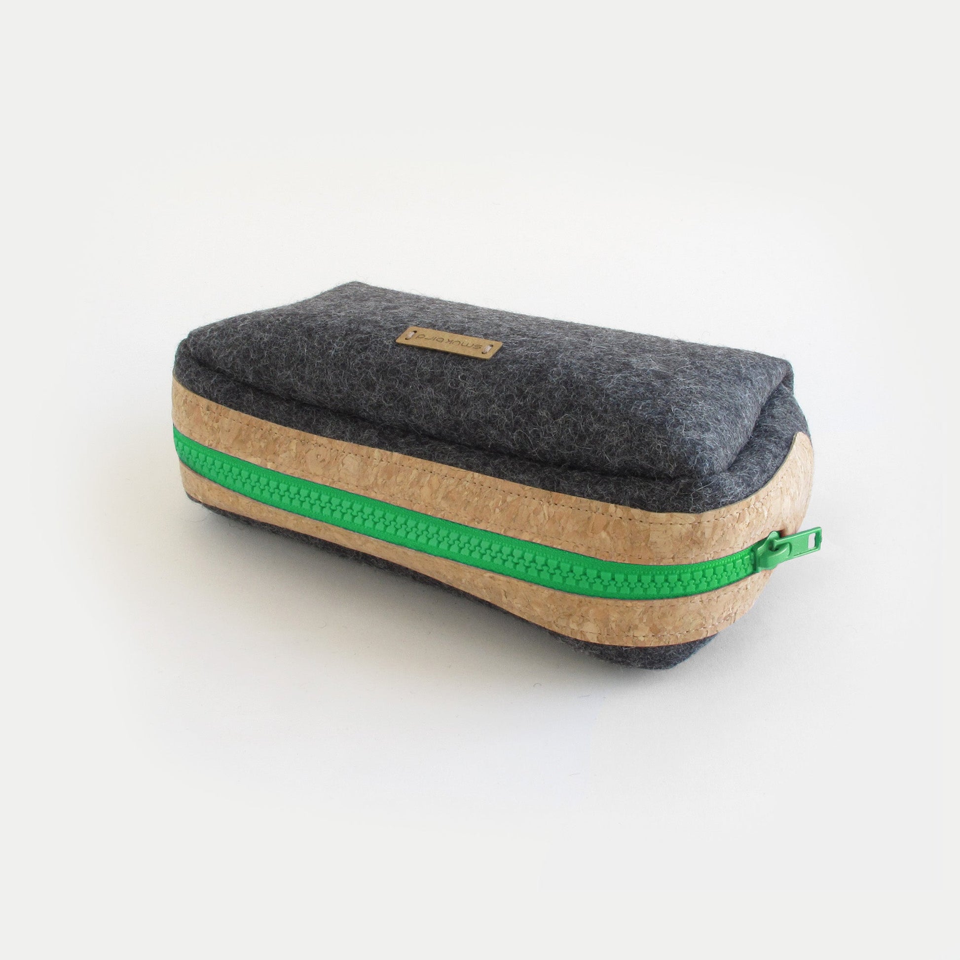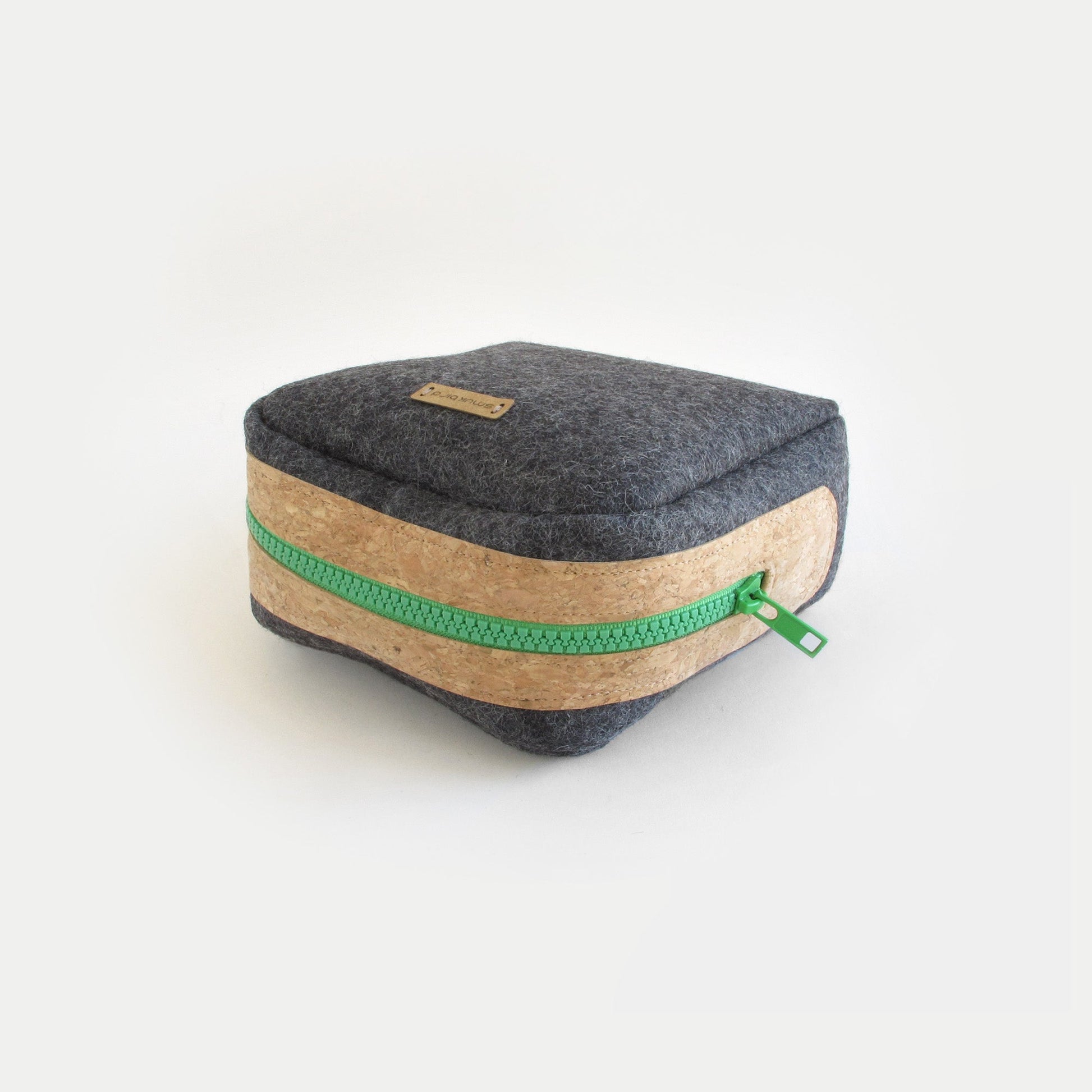 Zubehörtasche für Kabel & Co. | aus Filz und Kork | anthrazit-grün